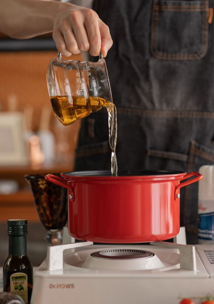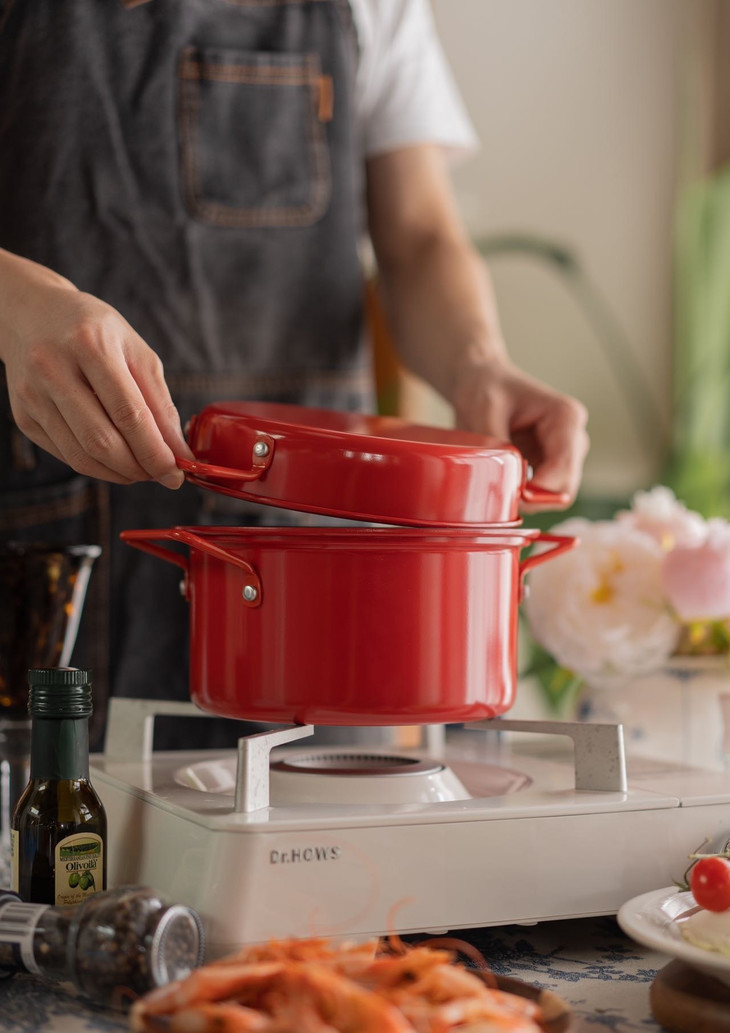 🍳拿到手的第一感觉就是质感很好 🔺德系的精工品质值得放心 一体成型 锅体流畅✅ 整个锅的气质特别高级 高颜值奶油白,朱砂红两色可选