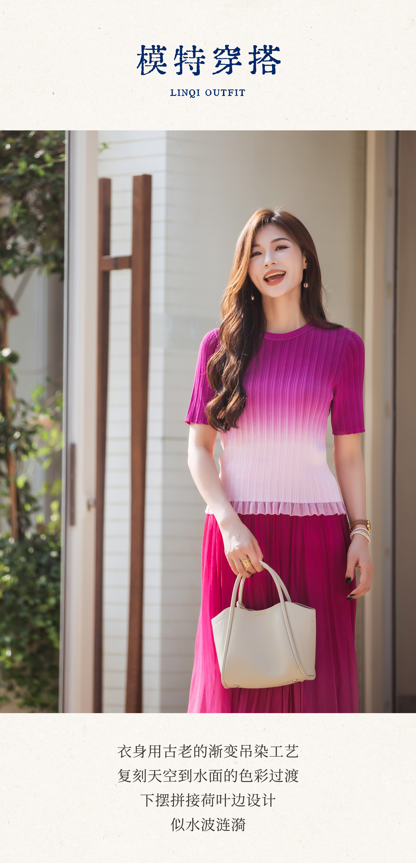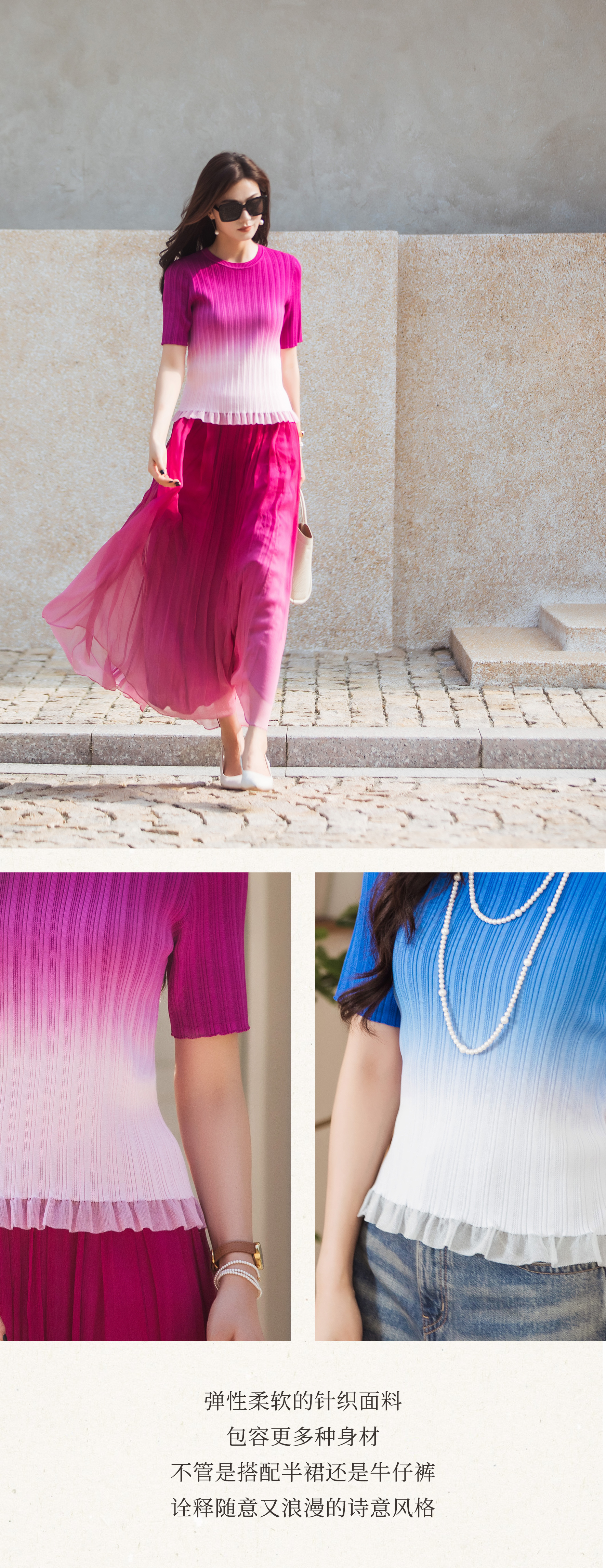 【林栖设计小店】【林栖推荐】【现货】渐变度假修身气质2025早秋新款多色上衣女N1953302
