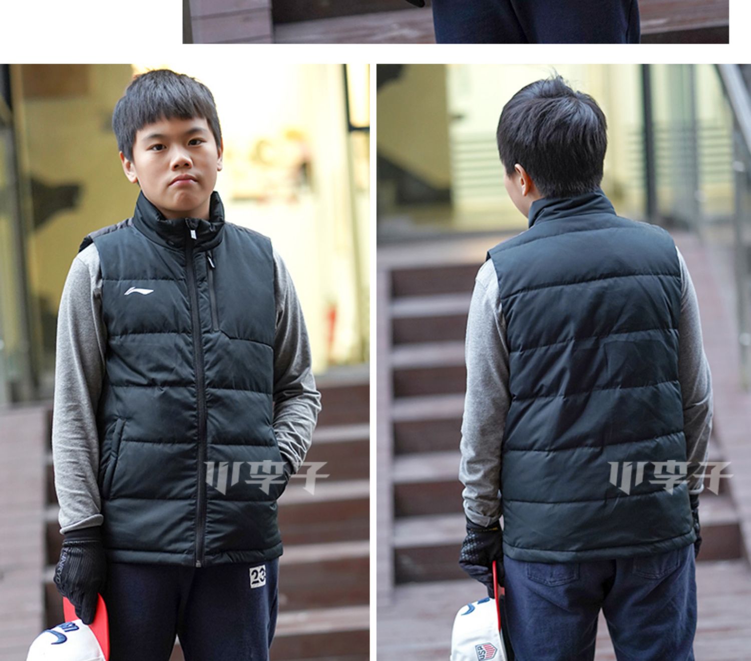 小李子:专柜正品李宁成人儿童冬季保暖运动羽绒马甲白鸭绒新款男