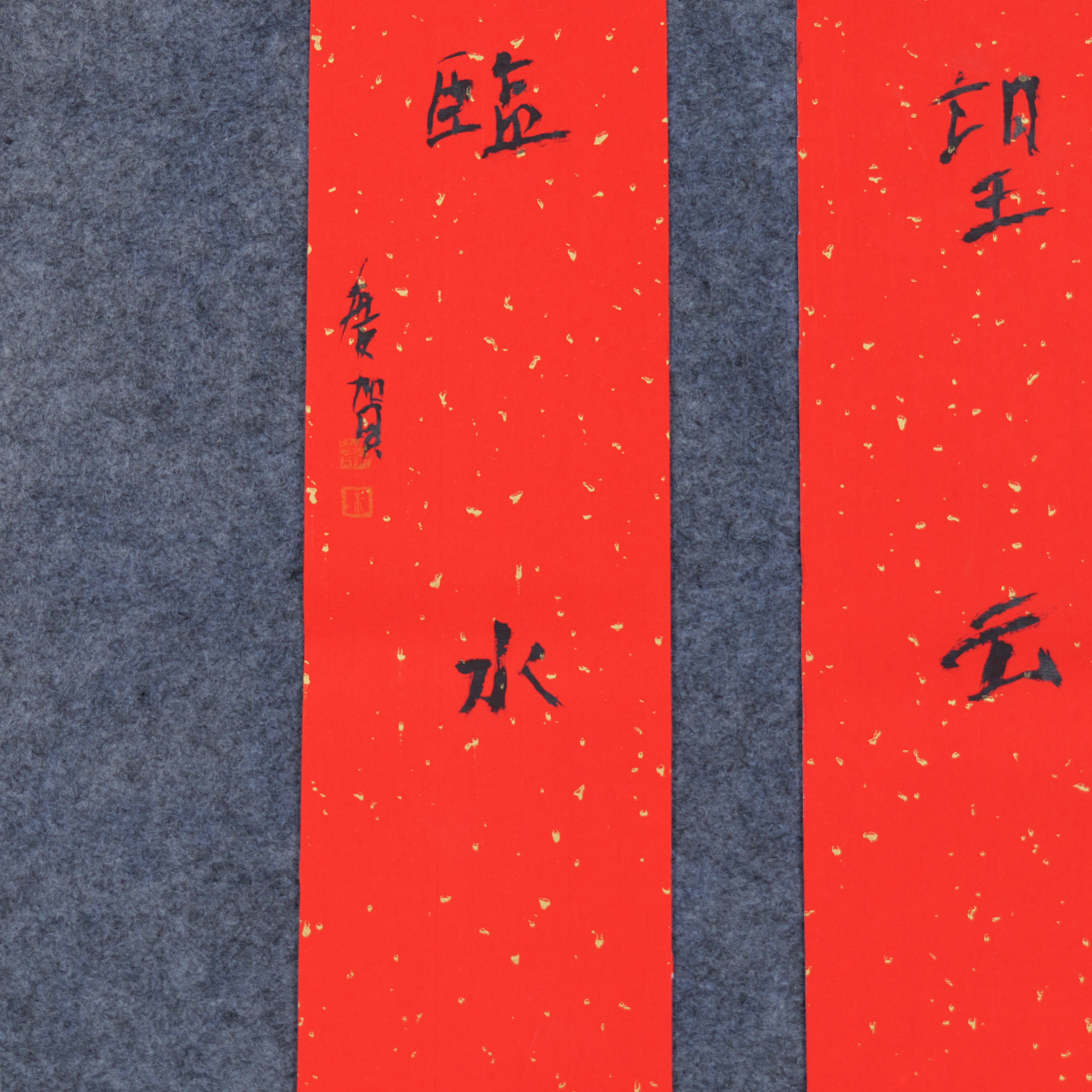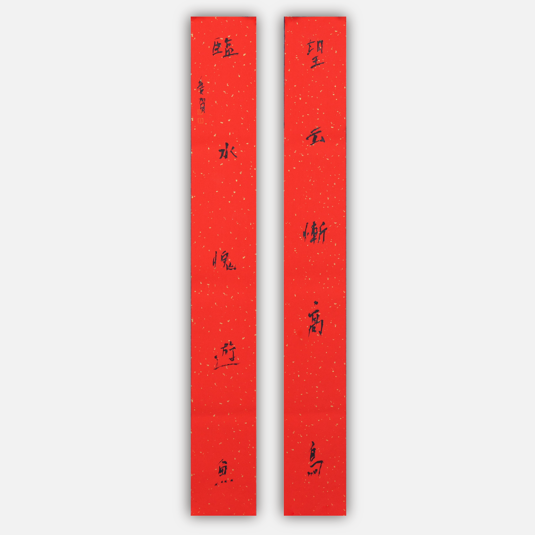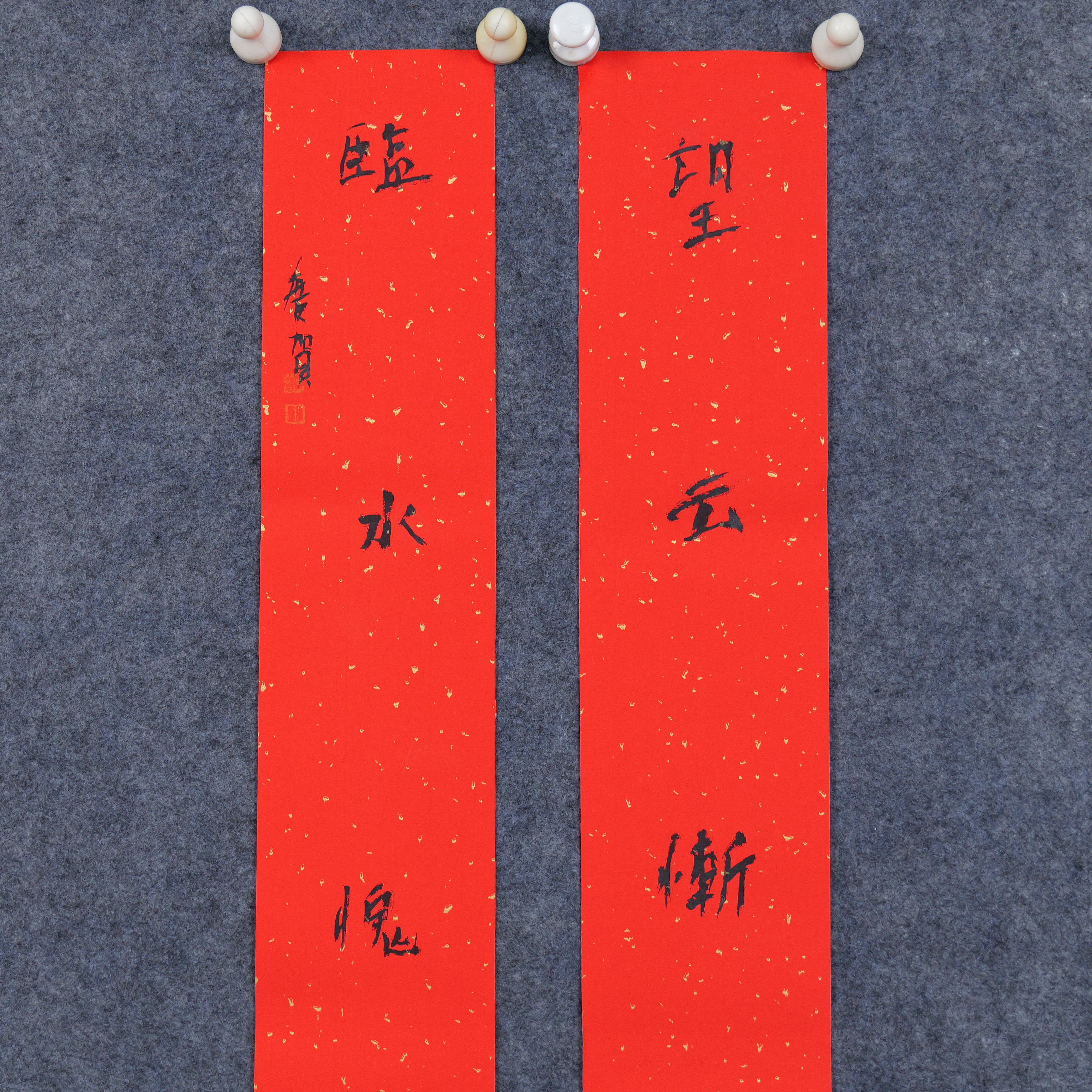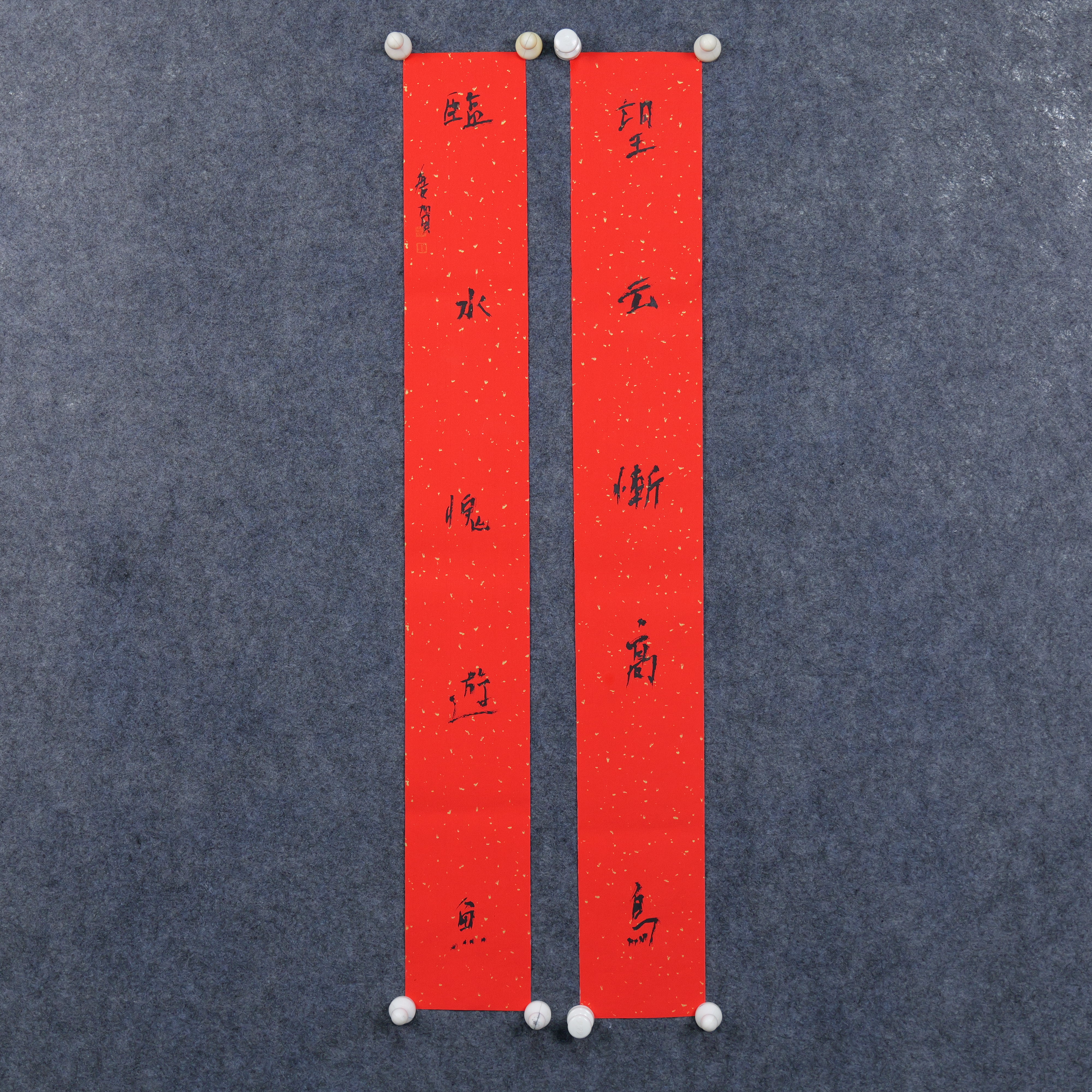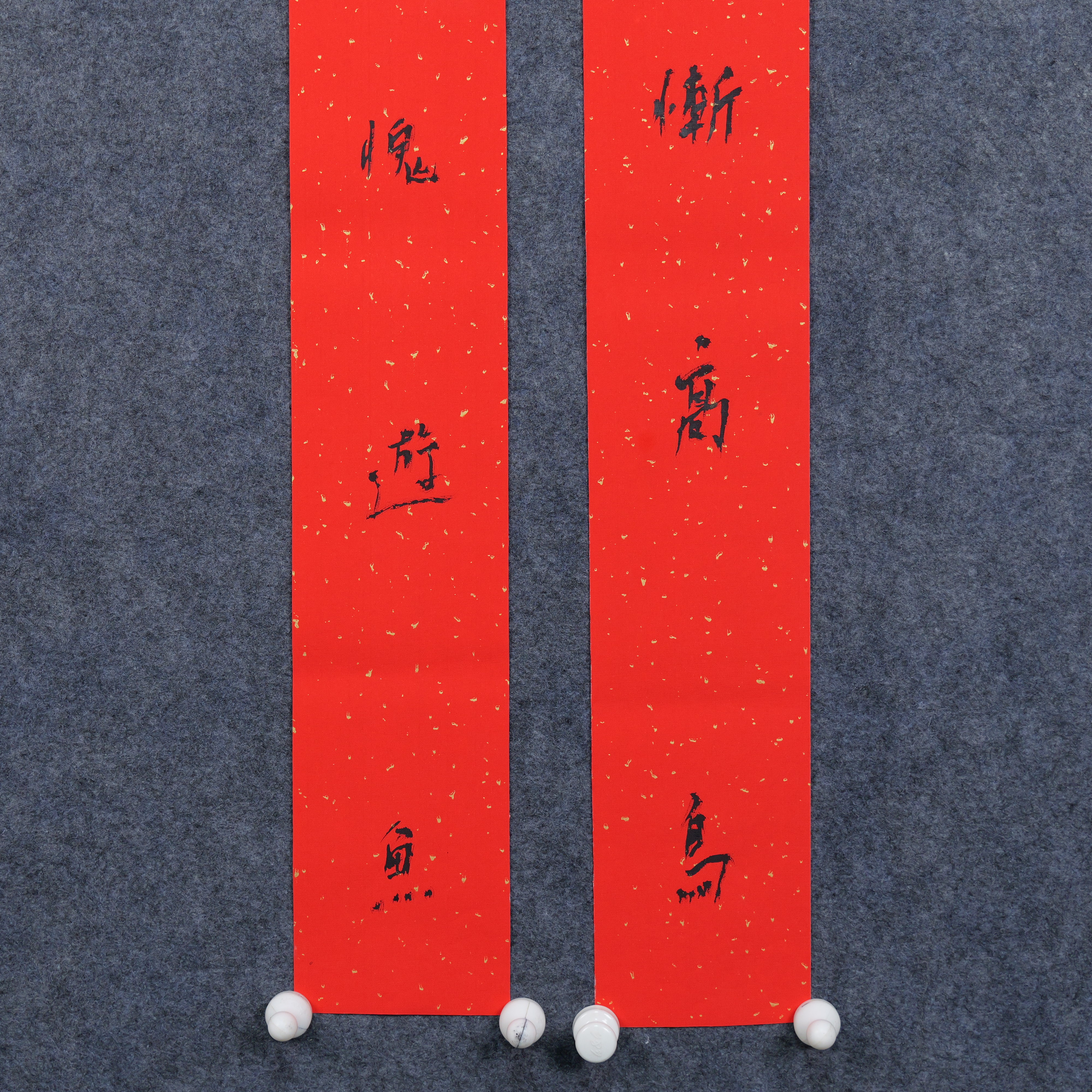 朱广贺《望云惭高鸟 临水愧游鱼》88.5x11.5cmx2 手写纸本春联纸书法对联
