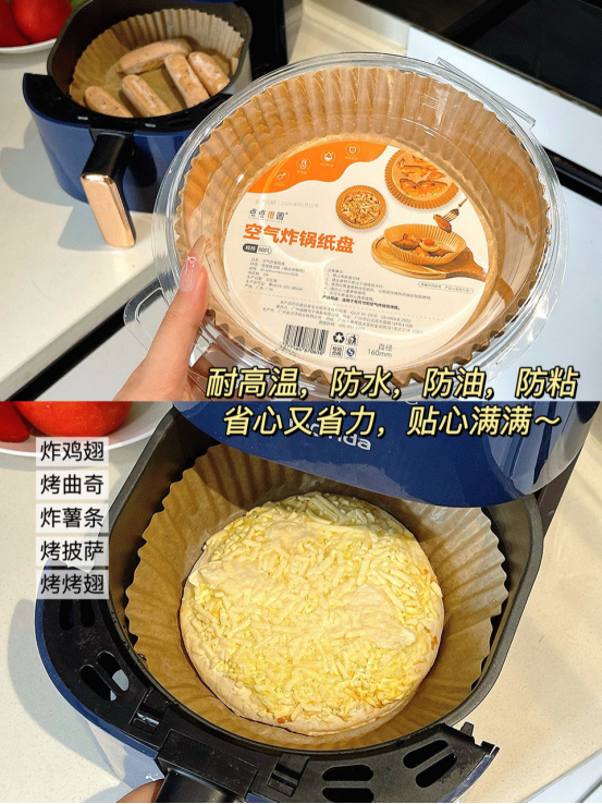 空气炸锅有了这纸盘才完整啊🥳 食品级材质超安心~ 平时用空气炸锅烤东西,油溅的到处都是,洗锅洗到崩溃! 这纸盘一铺,烤披萨、炸鸡,油脂全兜住,用完直接扔,清洁轻松到飞起 厨房偷懒必备,空气炸锅党快囤💥