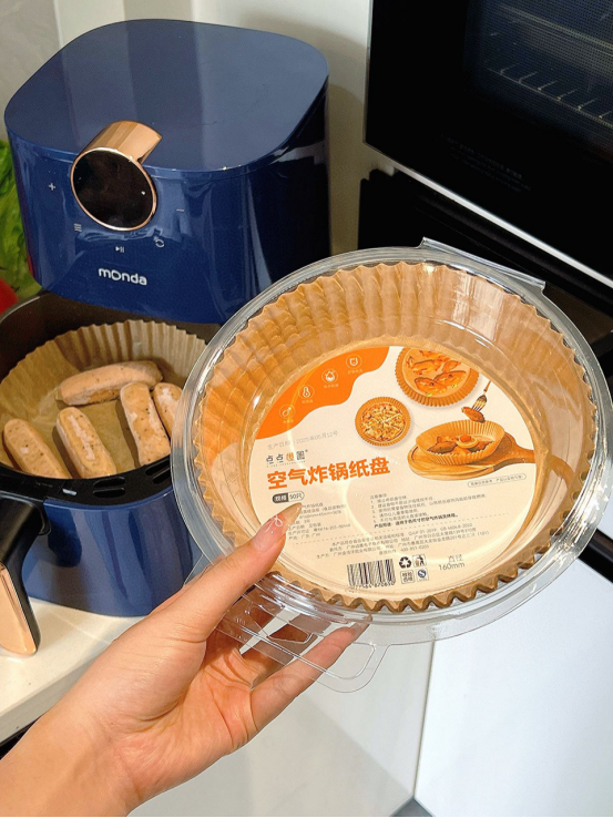 厨房好物分享|空气炸锅的绝配纸盘! 就是点点橙圆家的~ 食品级材质,安全放心🥰 每次用空气炸锅,铺上它,不管烤啥都很奈斯! 锅体不用刷,用完扔了就行,清洁0 压力~ 从此爱上用空气炸锅做美食,厨房小白也能轻松驾驭 冲!