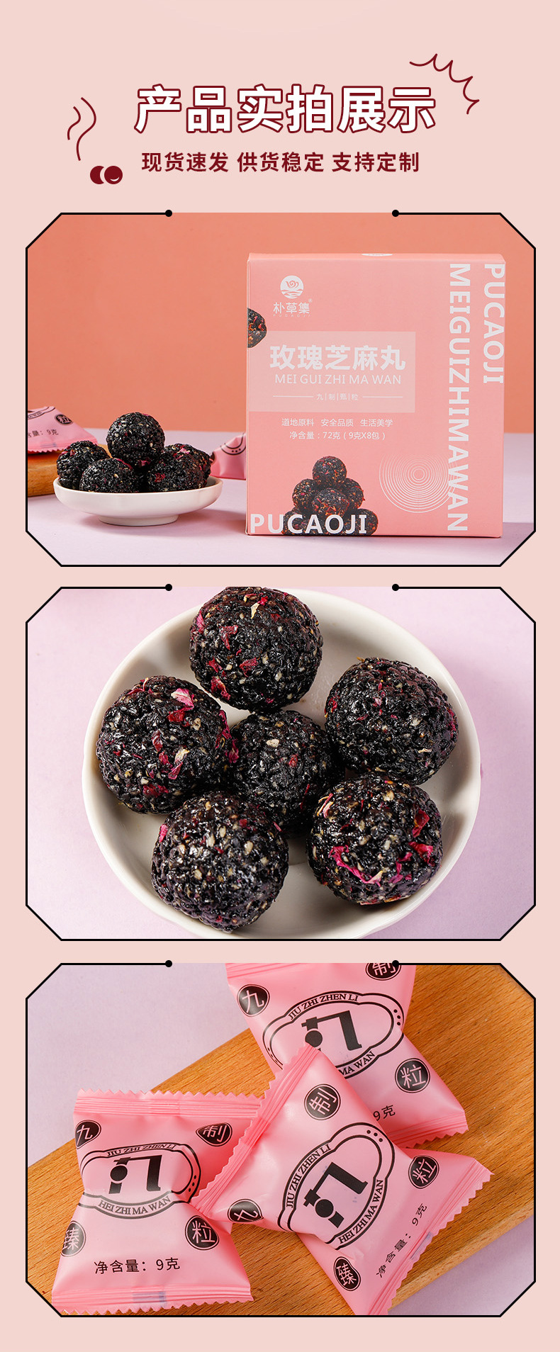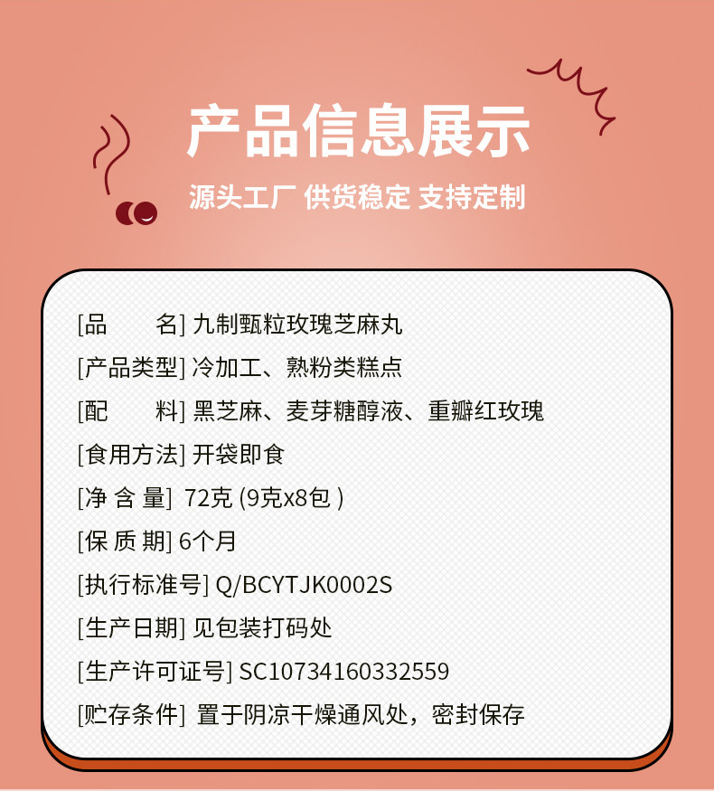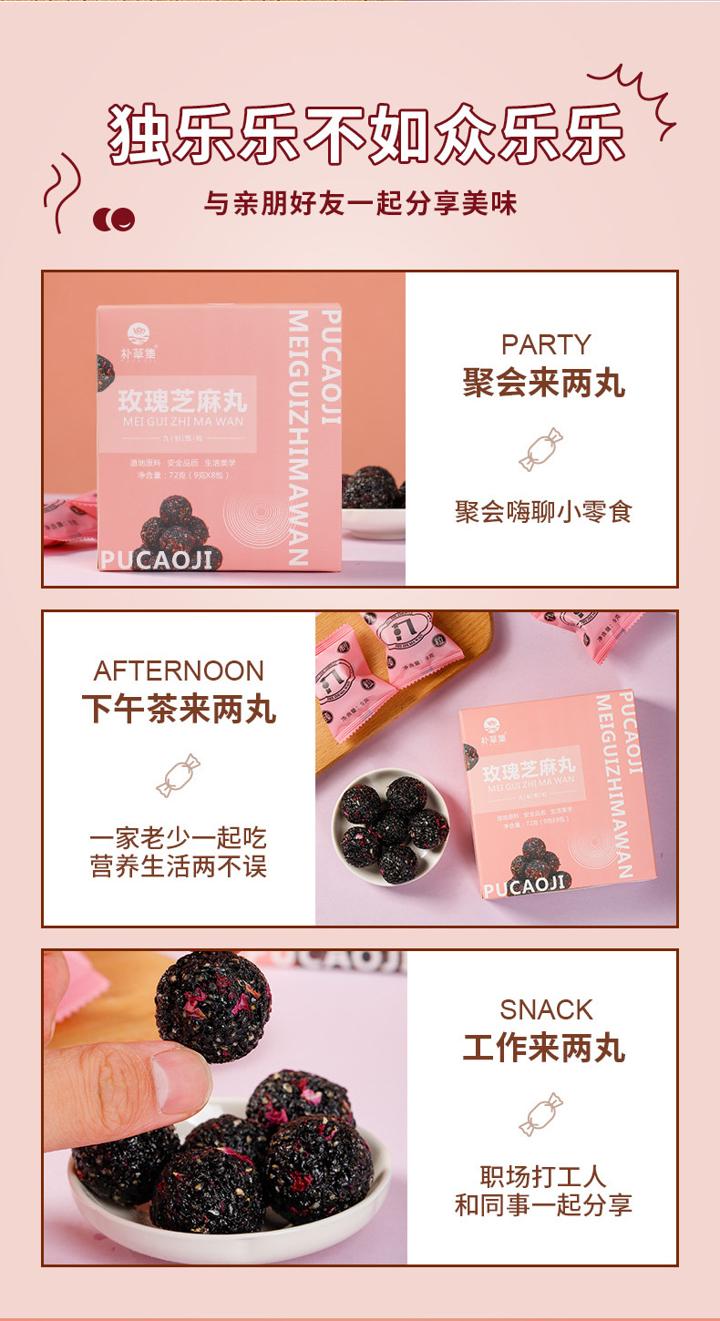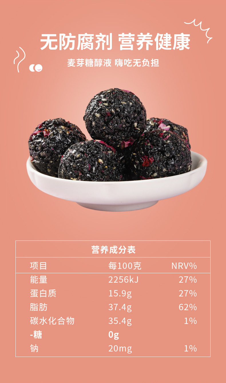 玫瑰芝麻丸即食健康五黑芝麻球72克盒装糕点网红零食现货批发