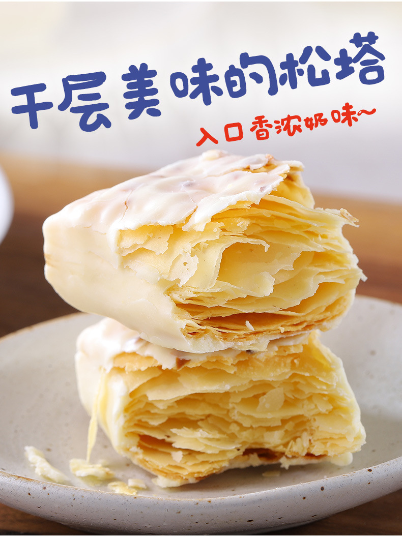 【入口香浓酥脆!松塔千层酥饼干】早餐佳选。醇香融合,柔软千层,一口咬下,酥脆包裹着绵密的口感,整箱小包装早餐吃的小吃休闲食品网红零食小吃健康