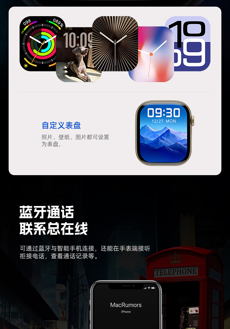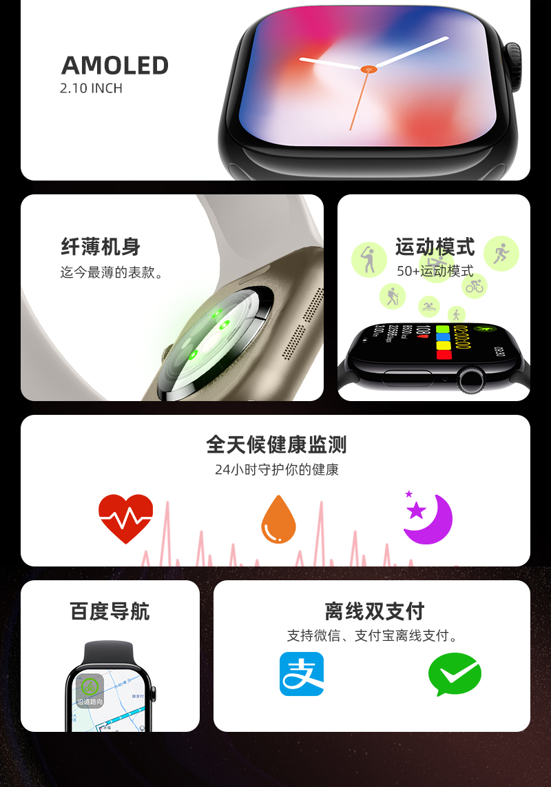 顶配Amoled屏S10智能蓝牙手表长续航大内存灵动岛运动手表双支付