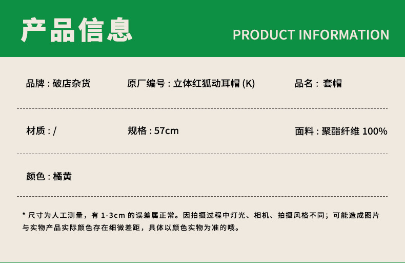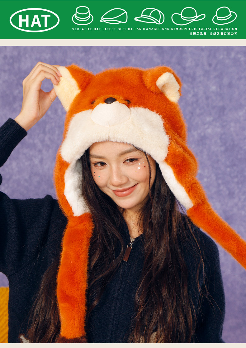 立体红狐动耳帽套帽帽子-纪念日百货门店同款165345082
