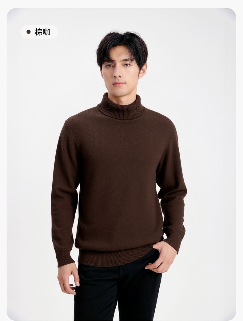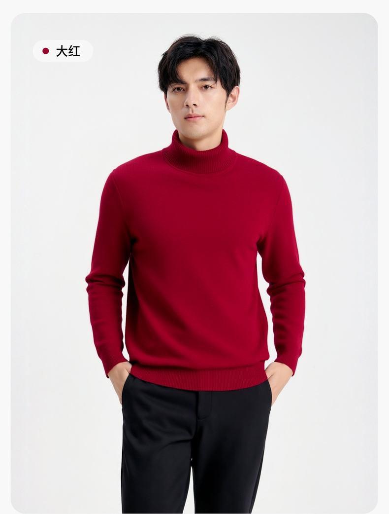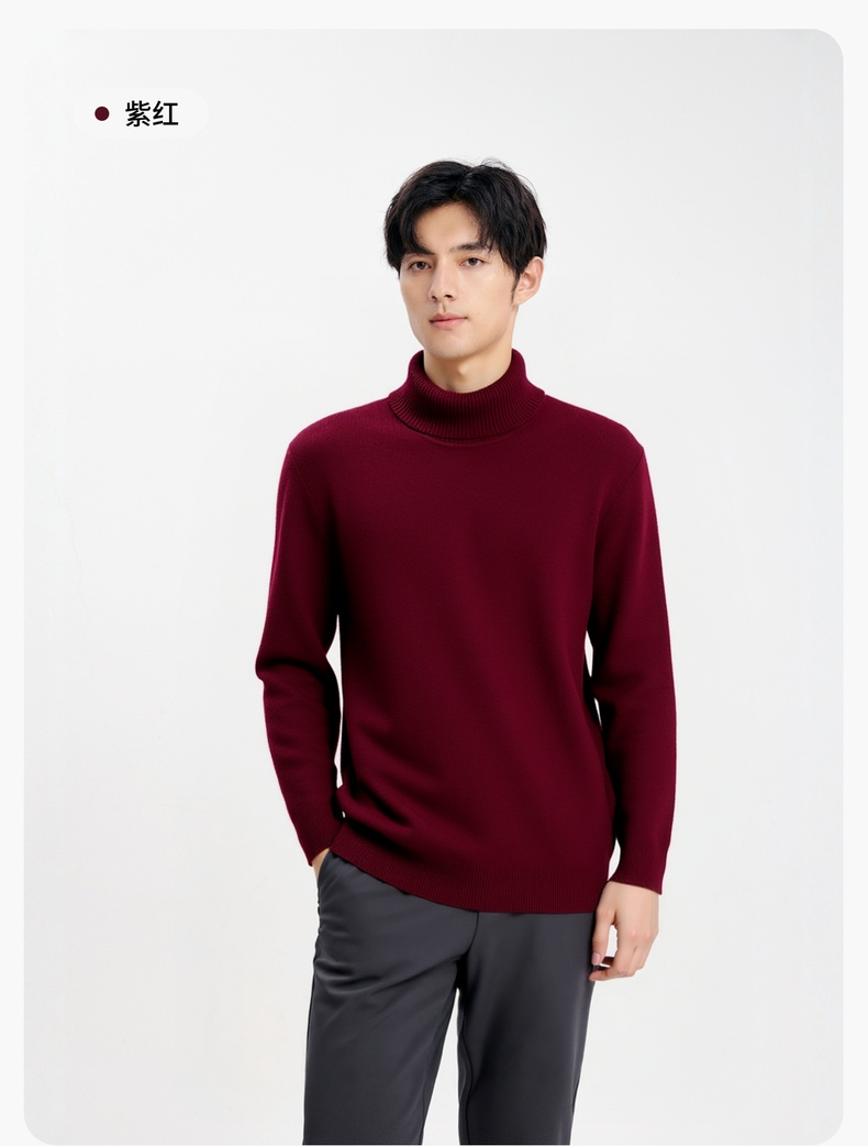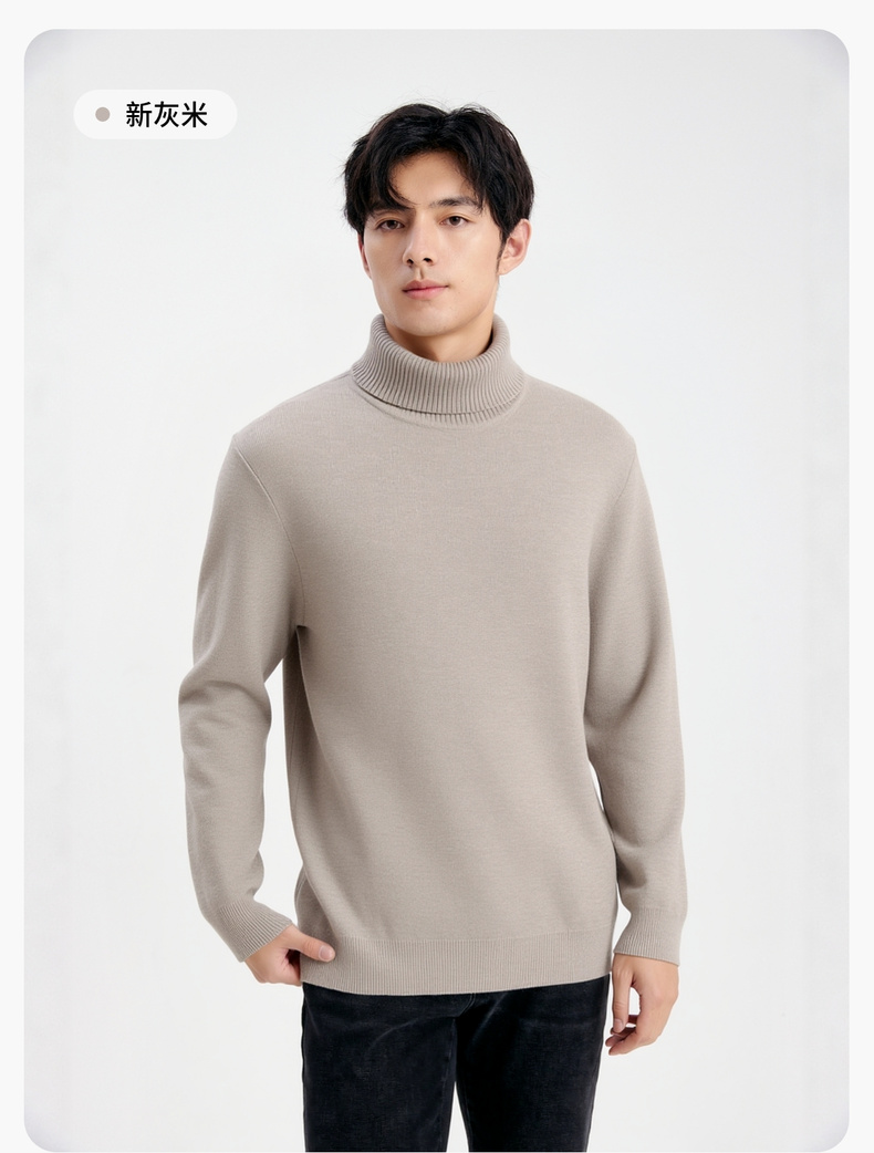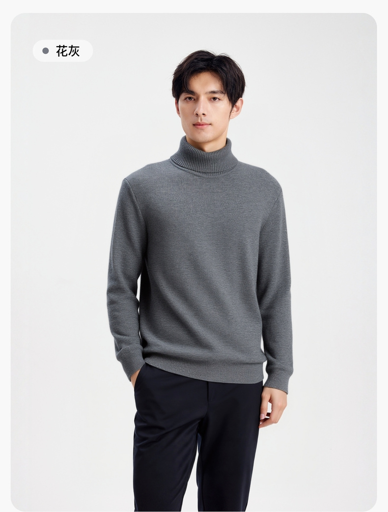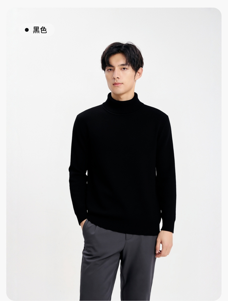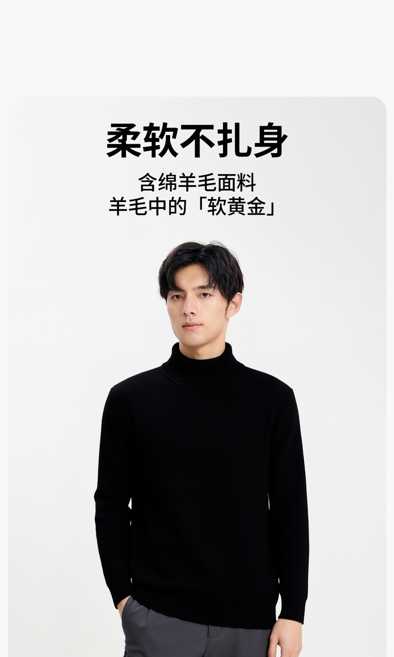 【含绵羊毛】圣得西男士高领针织衫2025年秋季纯色内搭打底羊毛衫