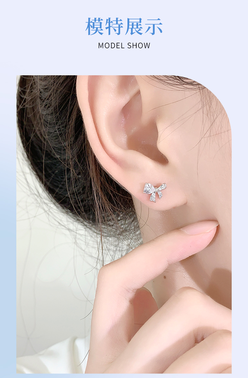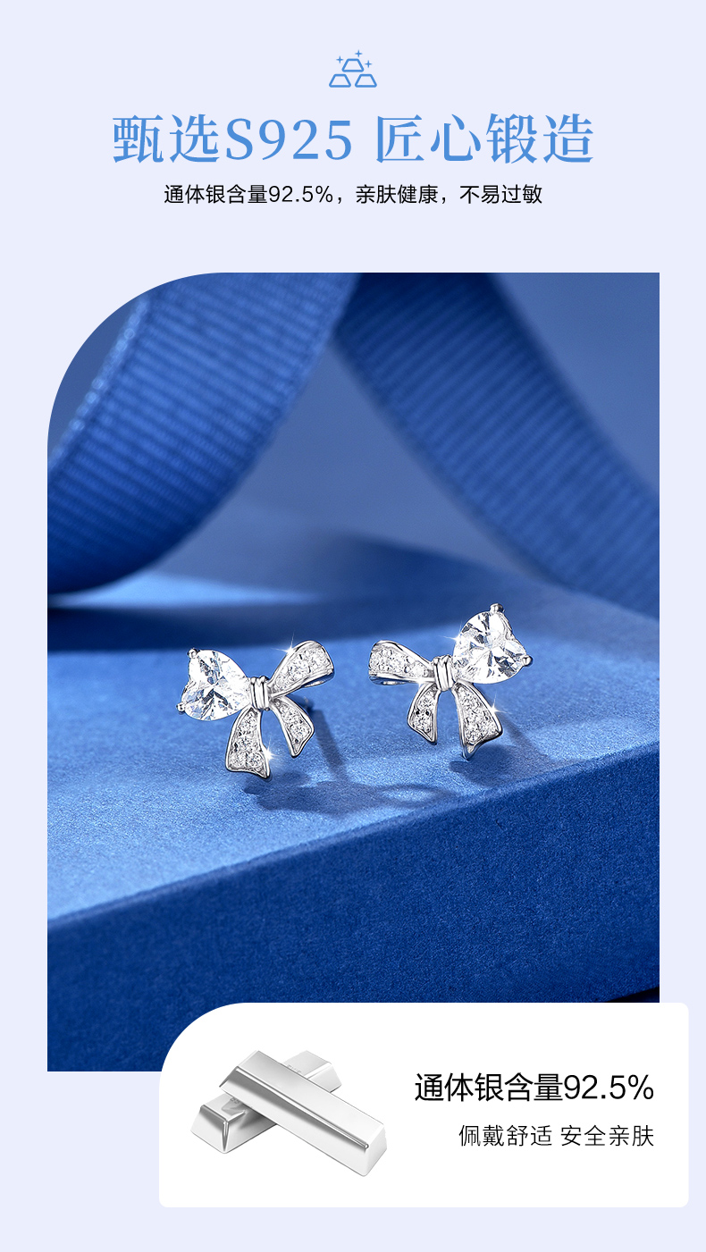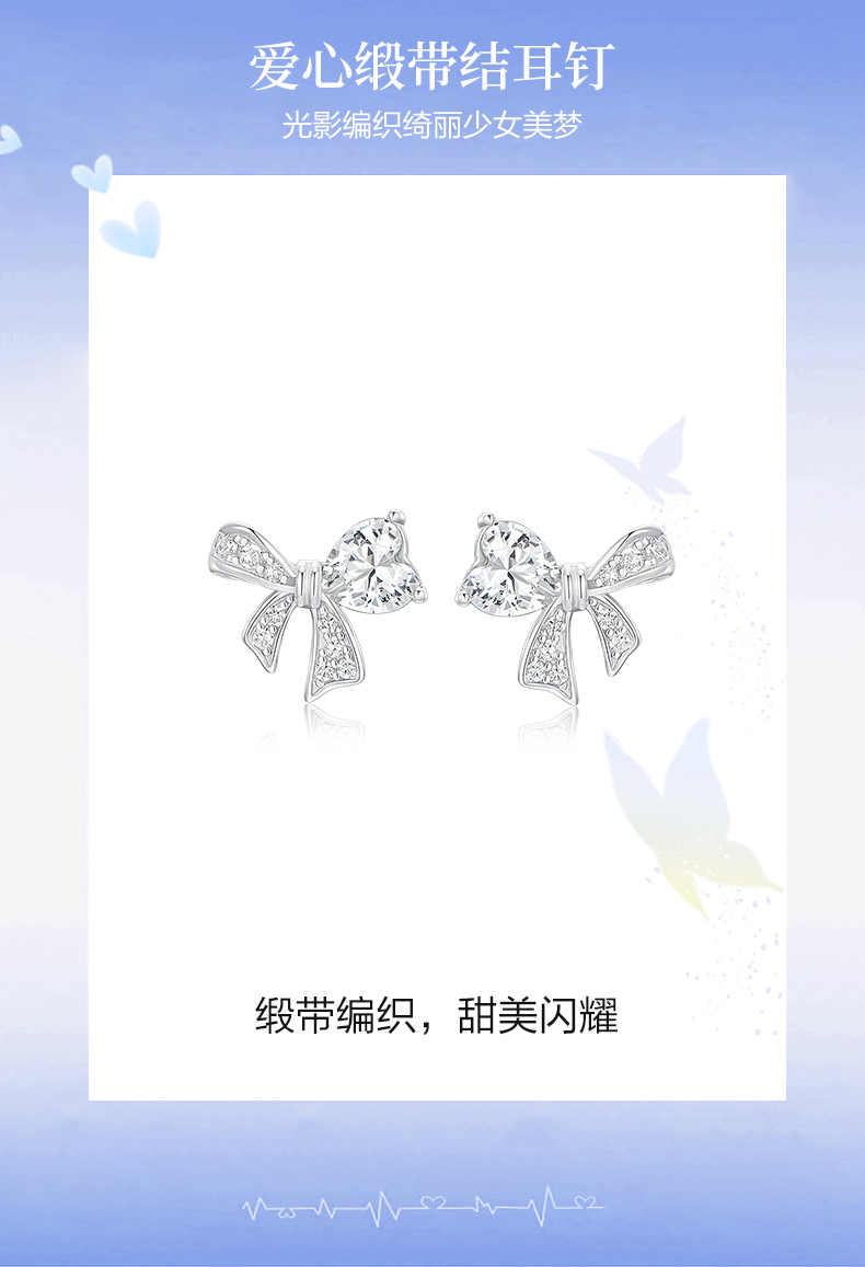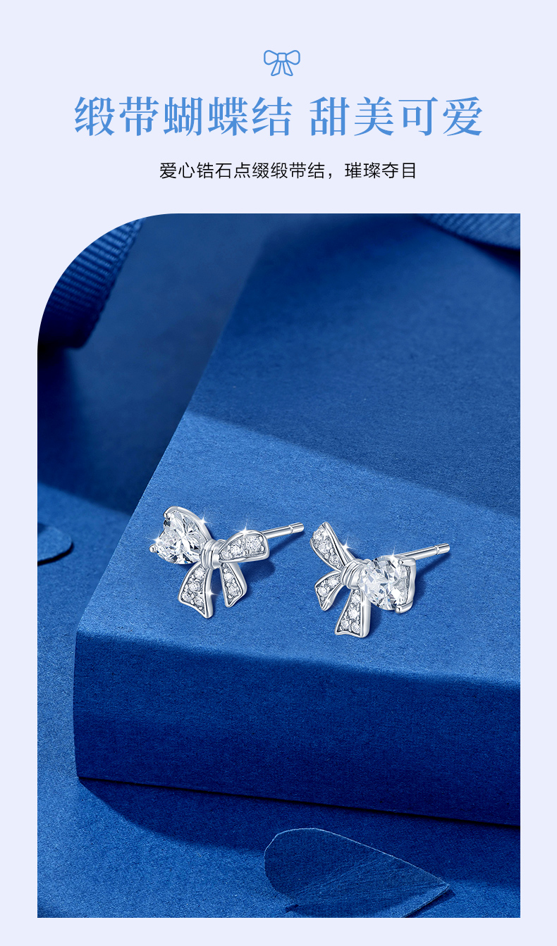 卡蒂罗/KADER 爱心缎带结耳钉 在逃公主满镶宝石甜美蝴蝶结耳饰 闪耀璀璨轻奢小巧高级感元气少女结配饰 925银