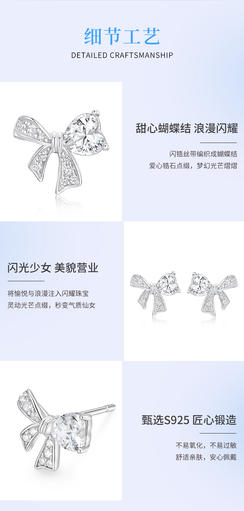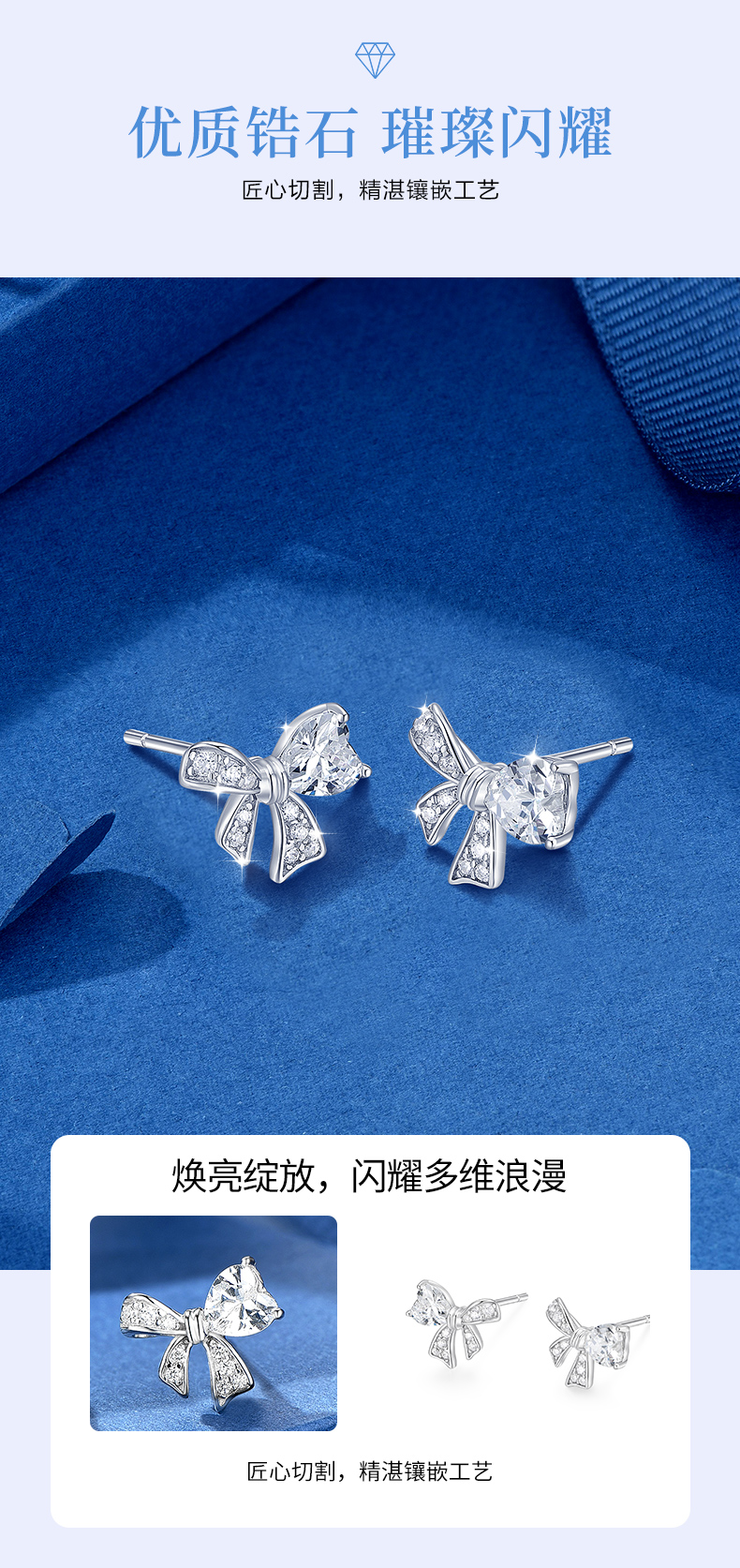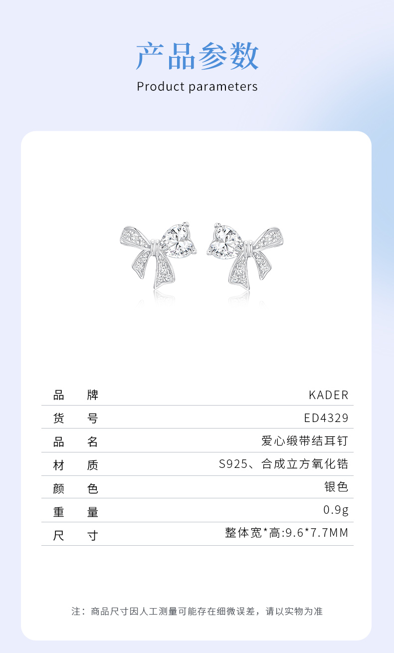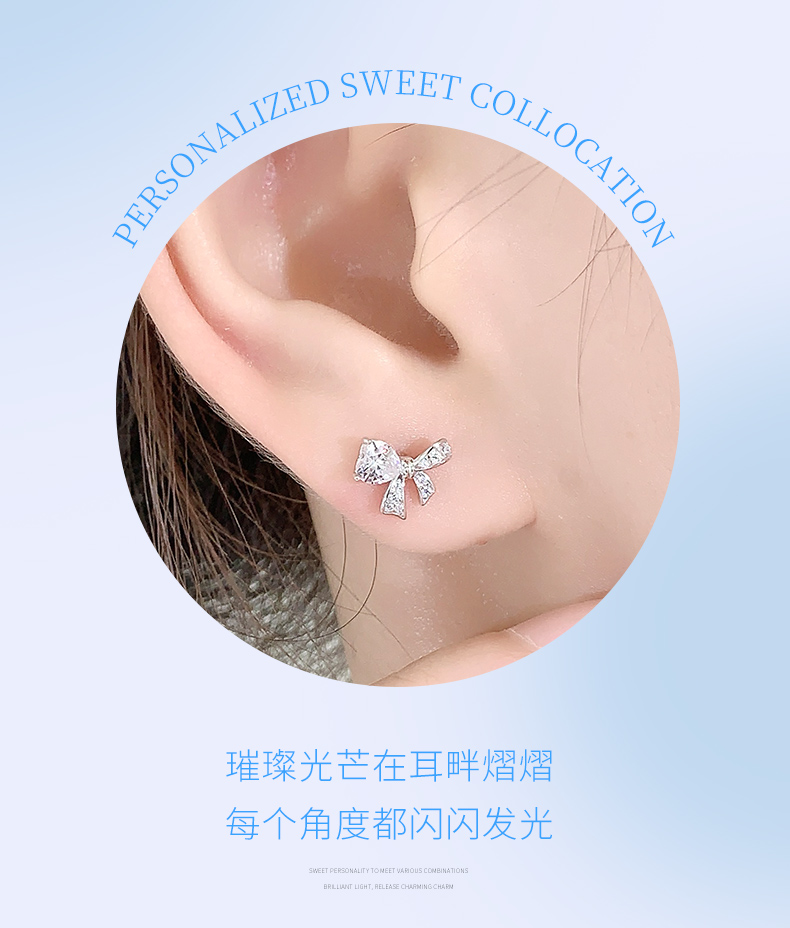 卡蒂罗/KADER 爱心缎带结耳钉 在逃公主满镶宝石甜美蝴蝶结耳饰 闪耀璀璨轻奢小巧高级感元气少女结配饰 925银