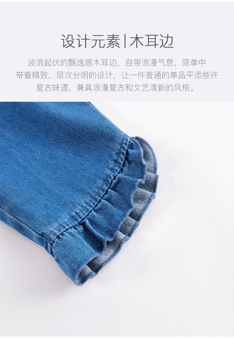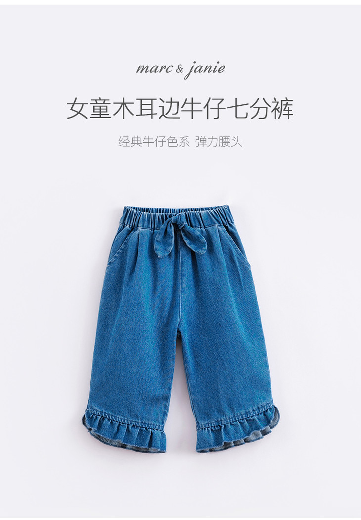 马克珍妮春夏新款 女童花边脚口牛仔七分裤 儿童裤子231110
