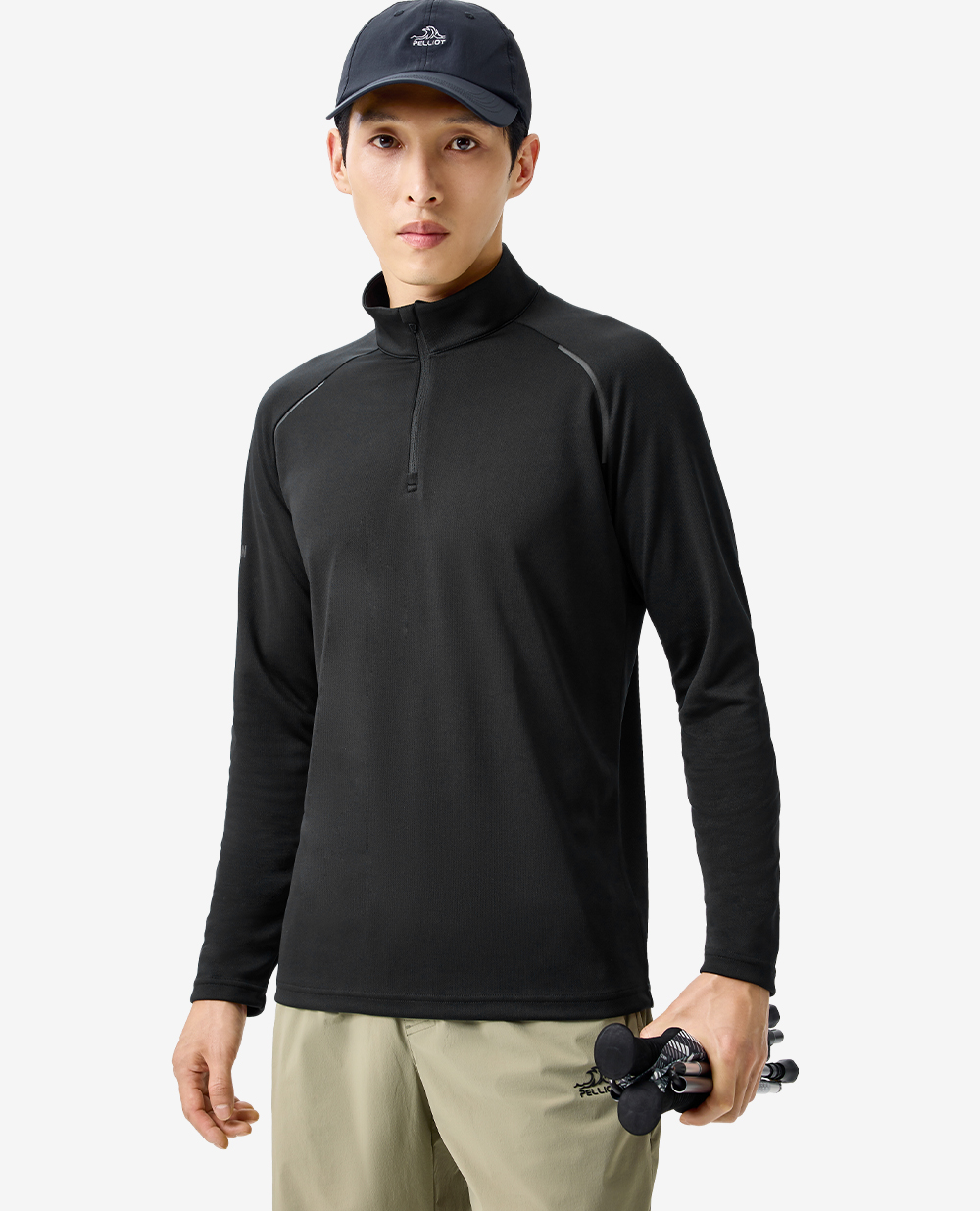 伯希和户外t恤男立领跑步快干衣徒步登山运动上衣透气长袖打底衫