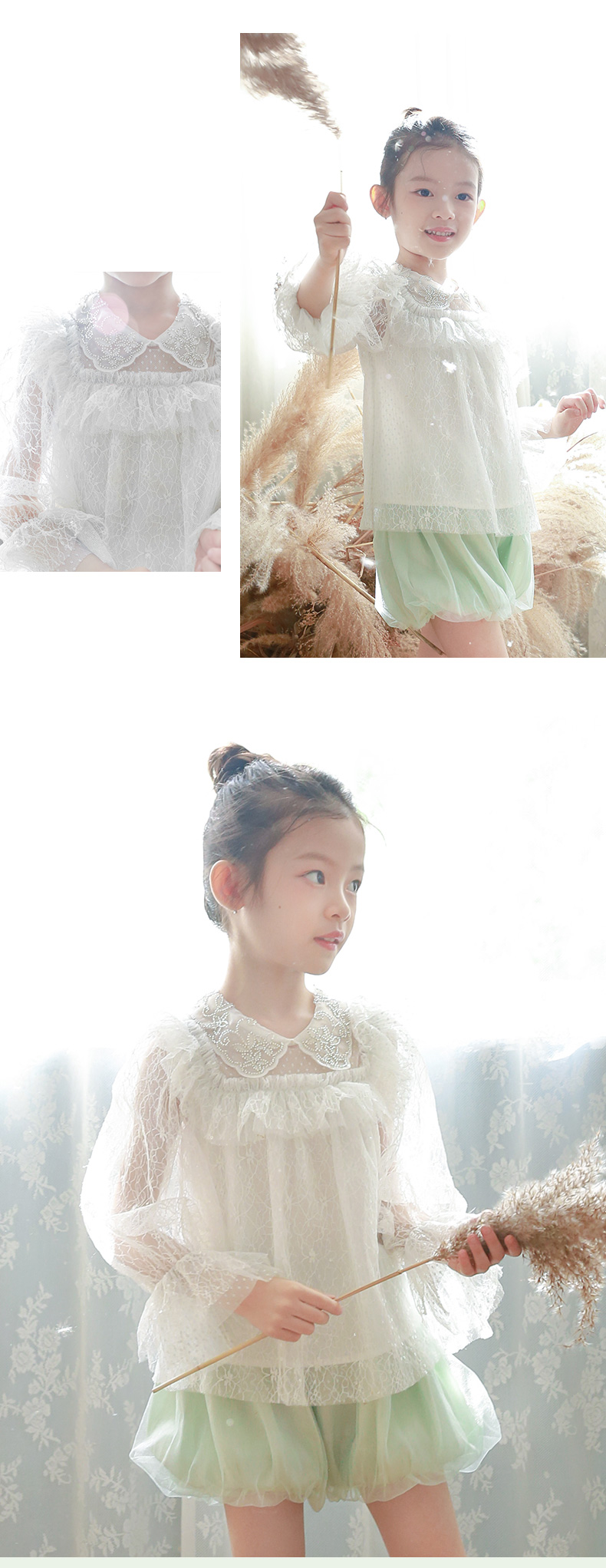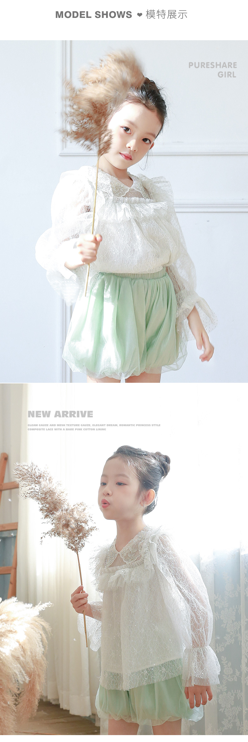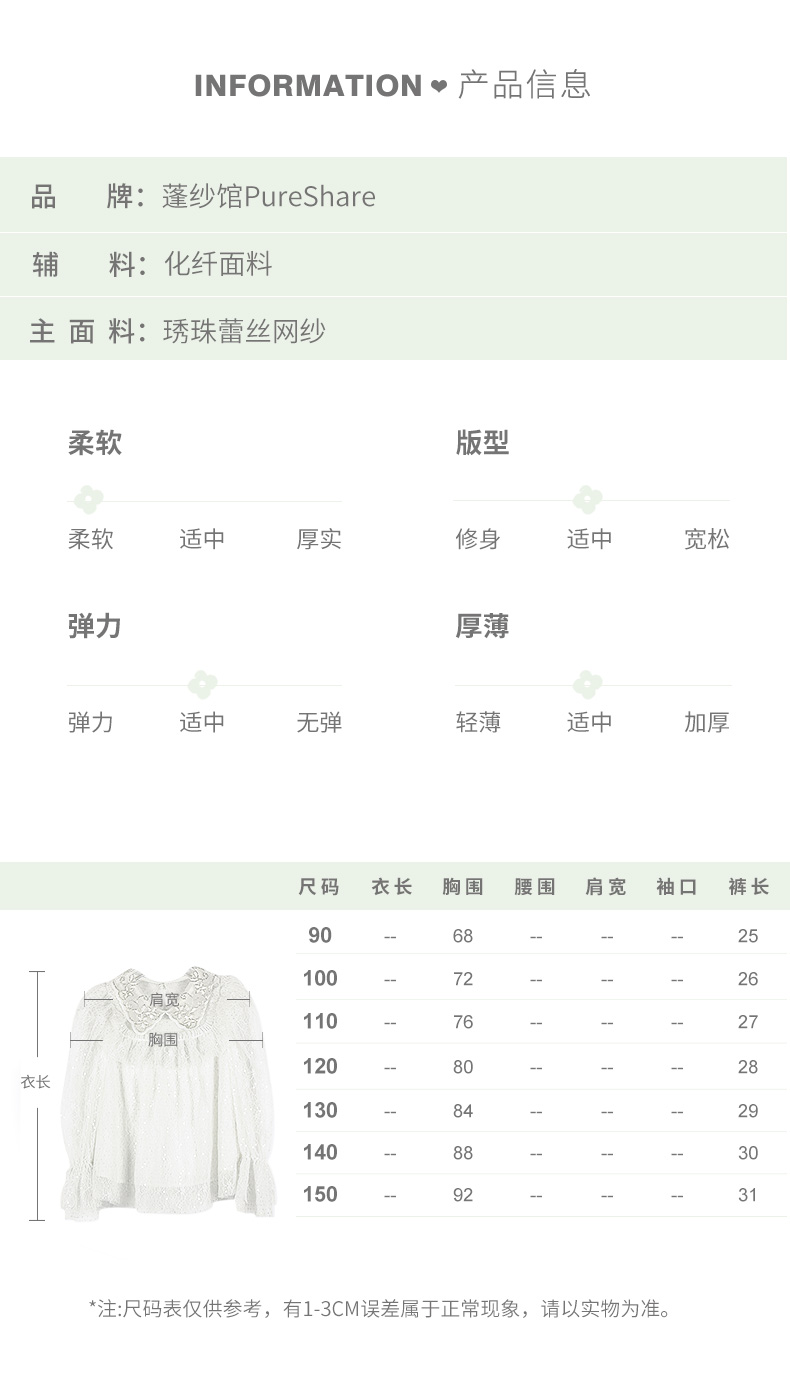 非质量问题不退换哦~pureshare 女童T恤一字领蕾丝上衣灯笼裤可爱气质