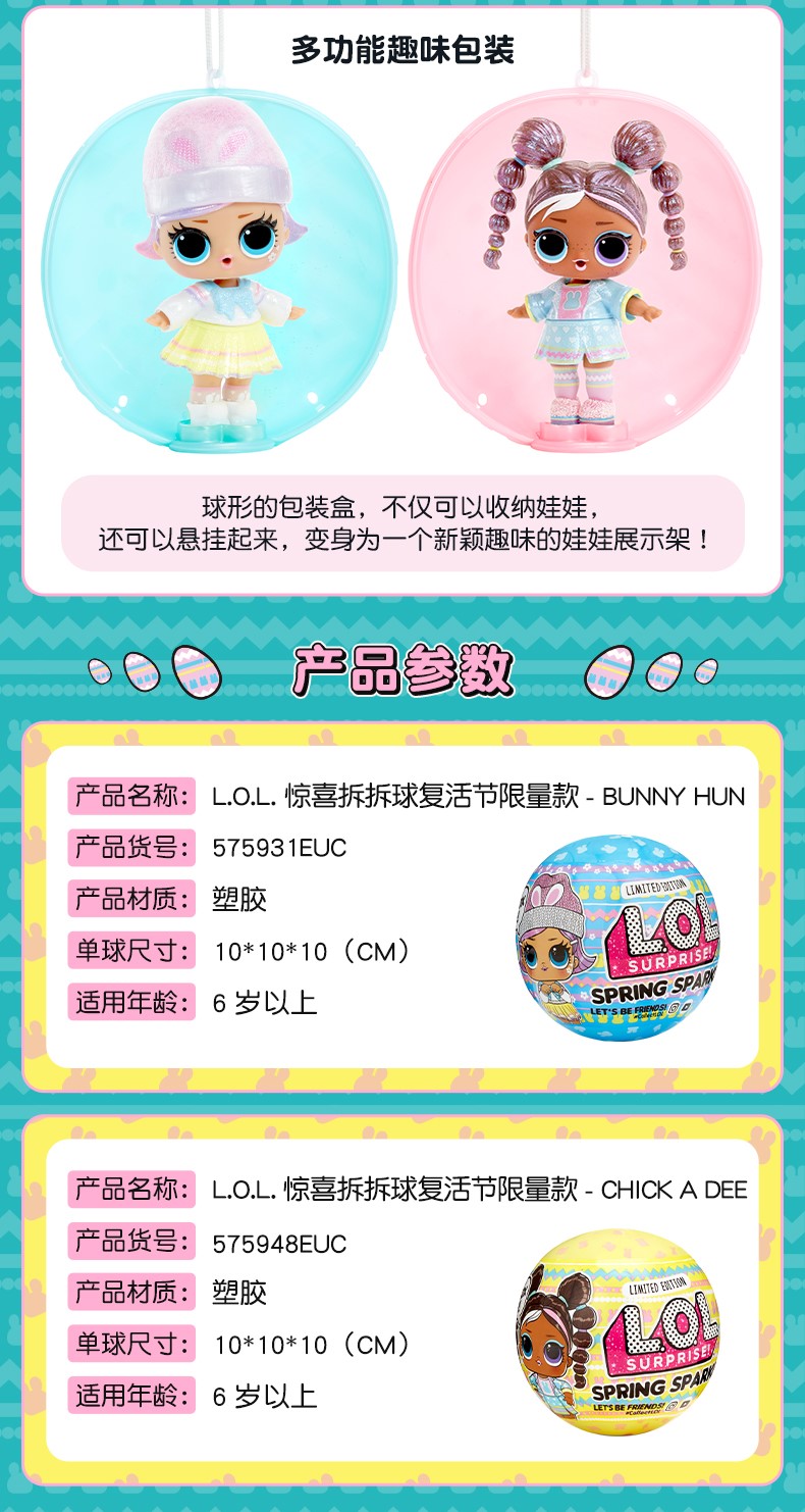 MGA 【复活节限量款】lol惊喜娃娃BunnyHun拆拆球儿童女孩玩具