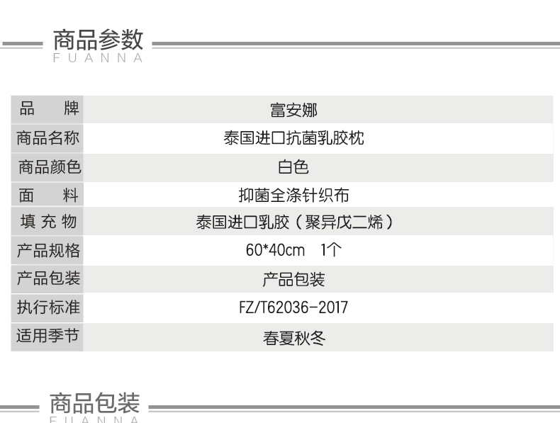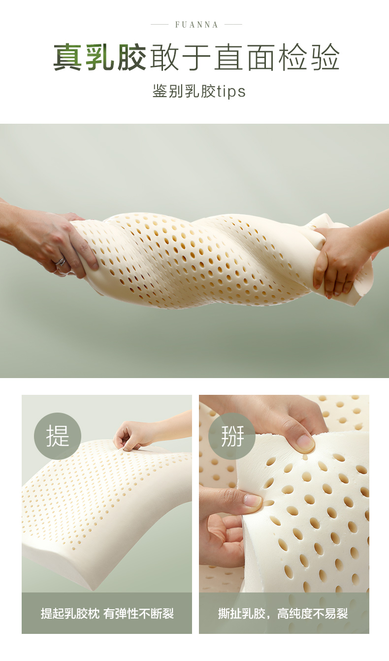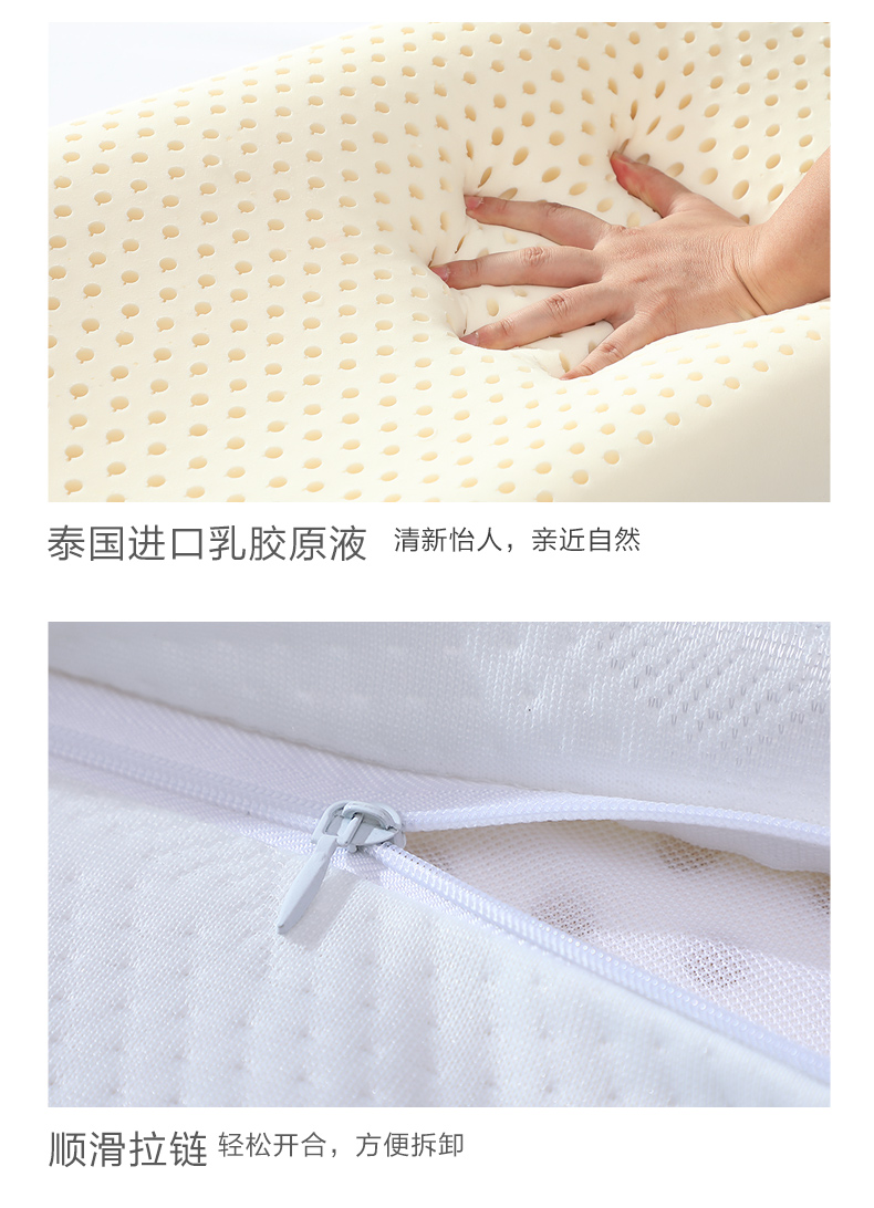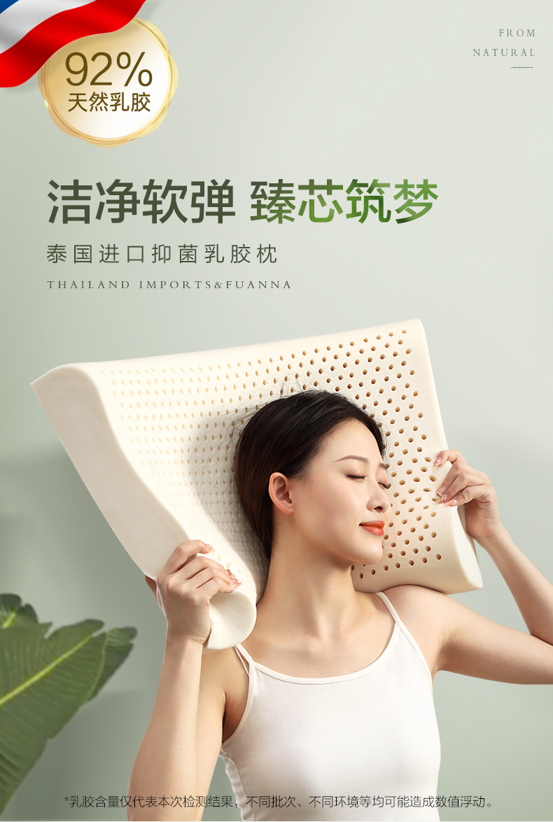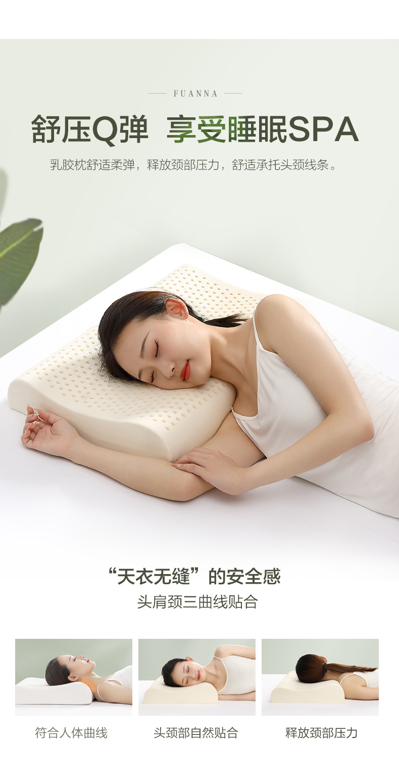 富安娜家纺 泰国乳胶枕头 进口天然乳胶枕芯 波浪乳胶枕升级抗菌面料透气枕 成人颈椎枕60*40cm(高8-10cm)
