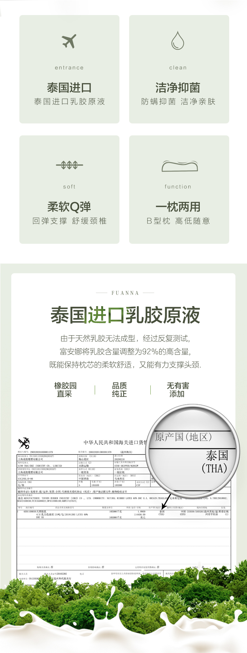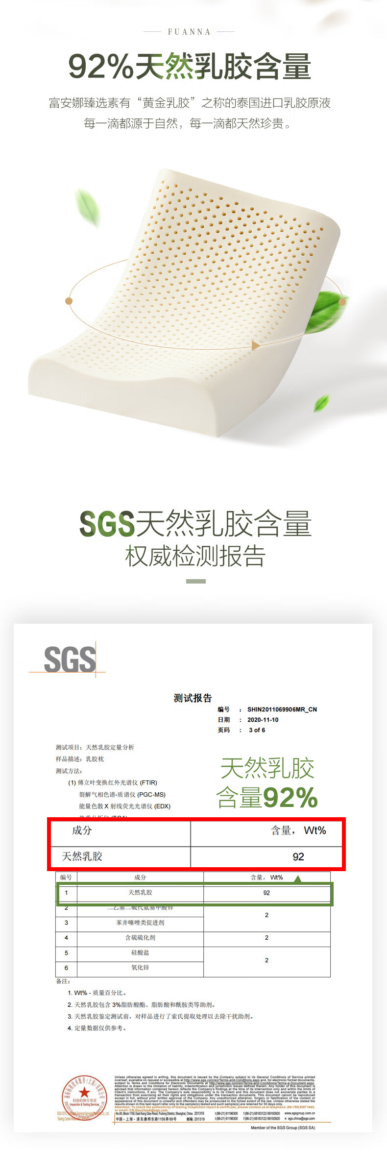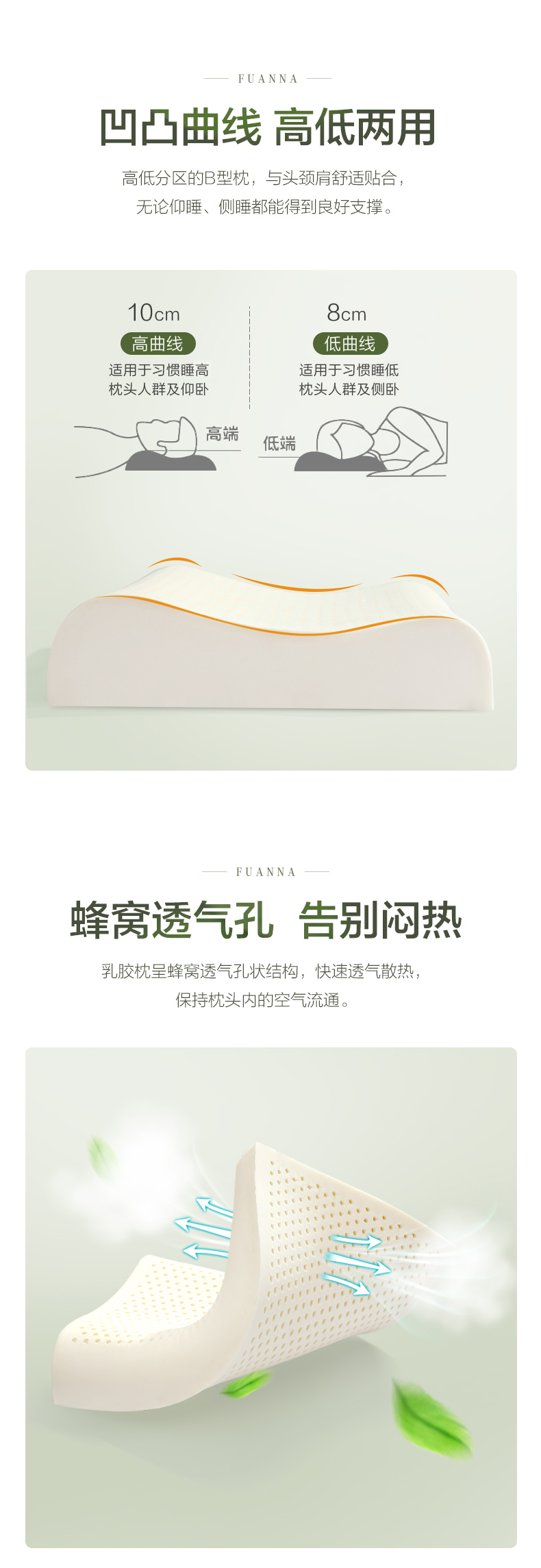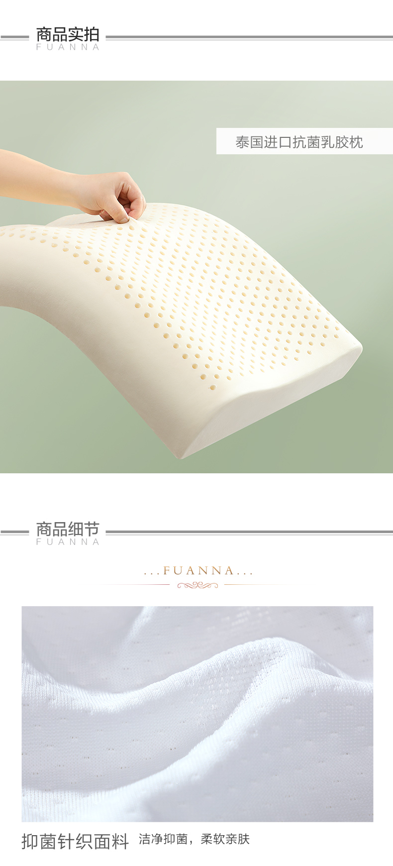 富安娜家纺 泰国乳胶枕头 进口天然乳胶枕芯 波浪乳胶枕升级抗菌面料透气枕 成人颈椎枕60*40cm(高8-10cm)