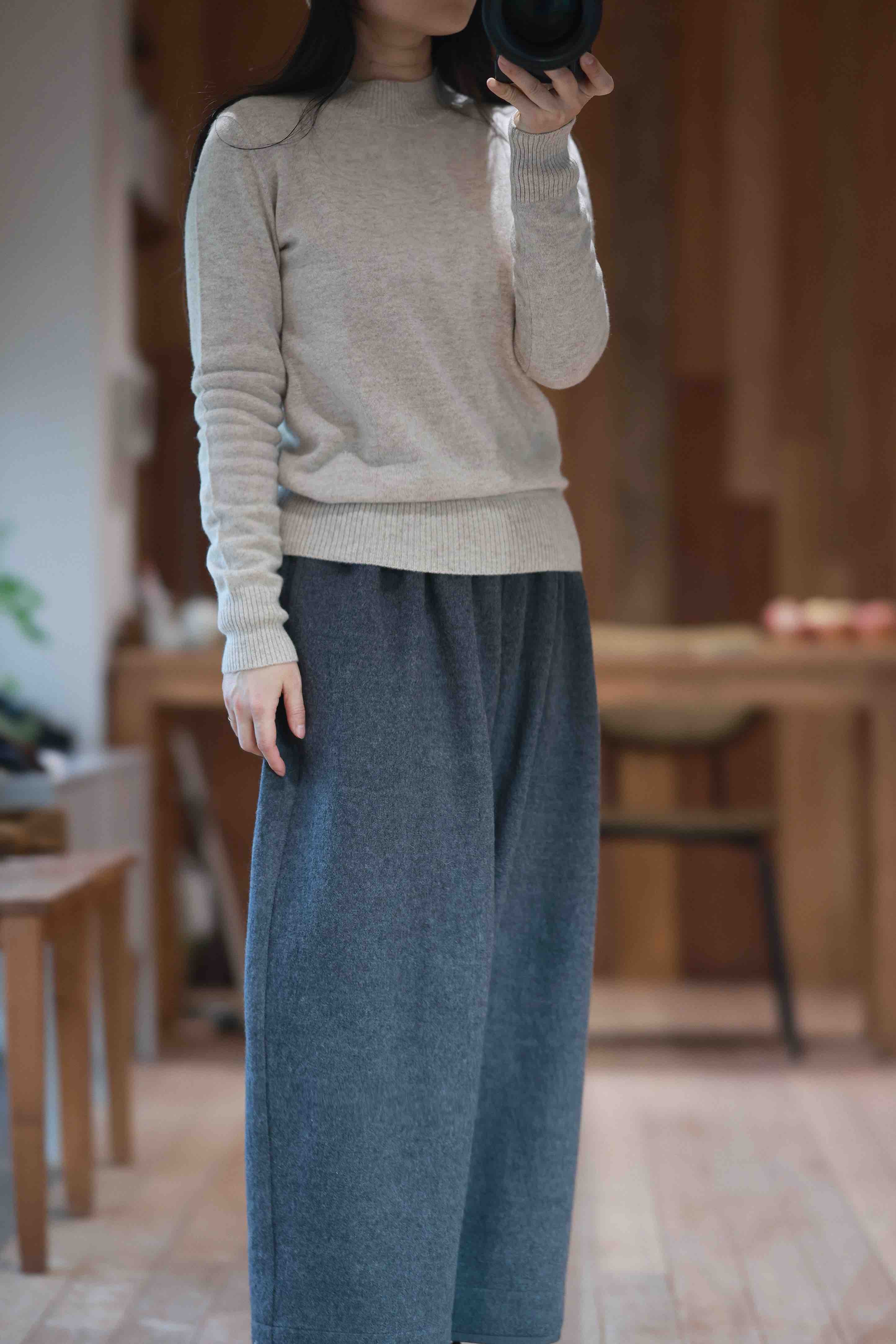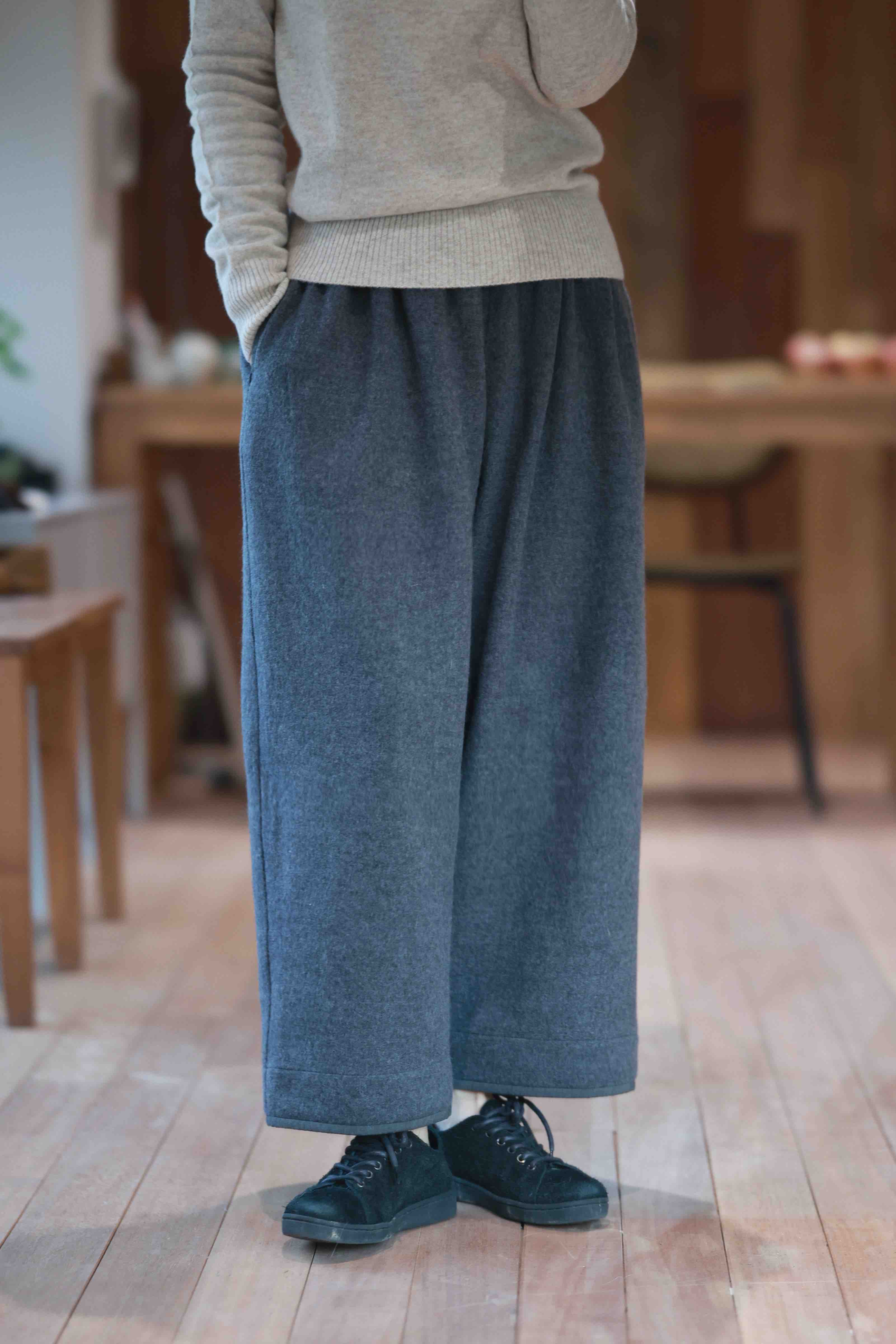 黄阿福 柔软斜纹羊毛九分褶裤