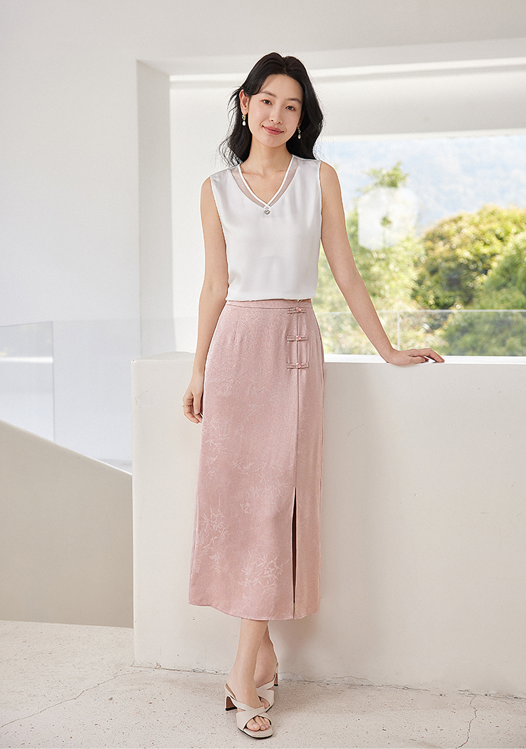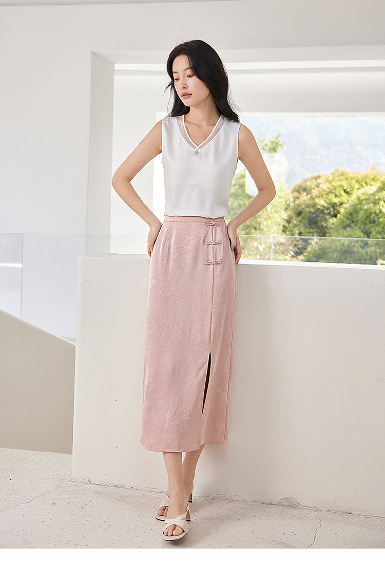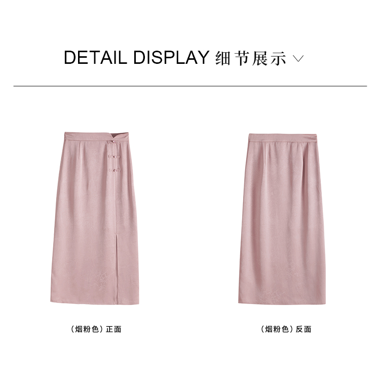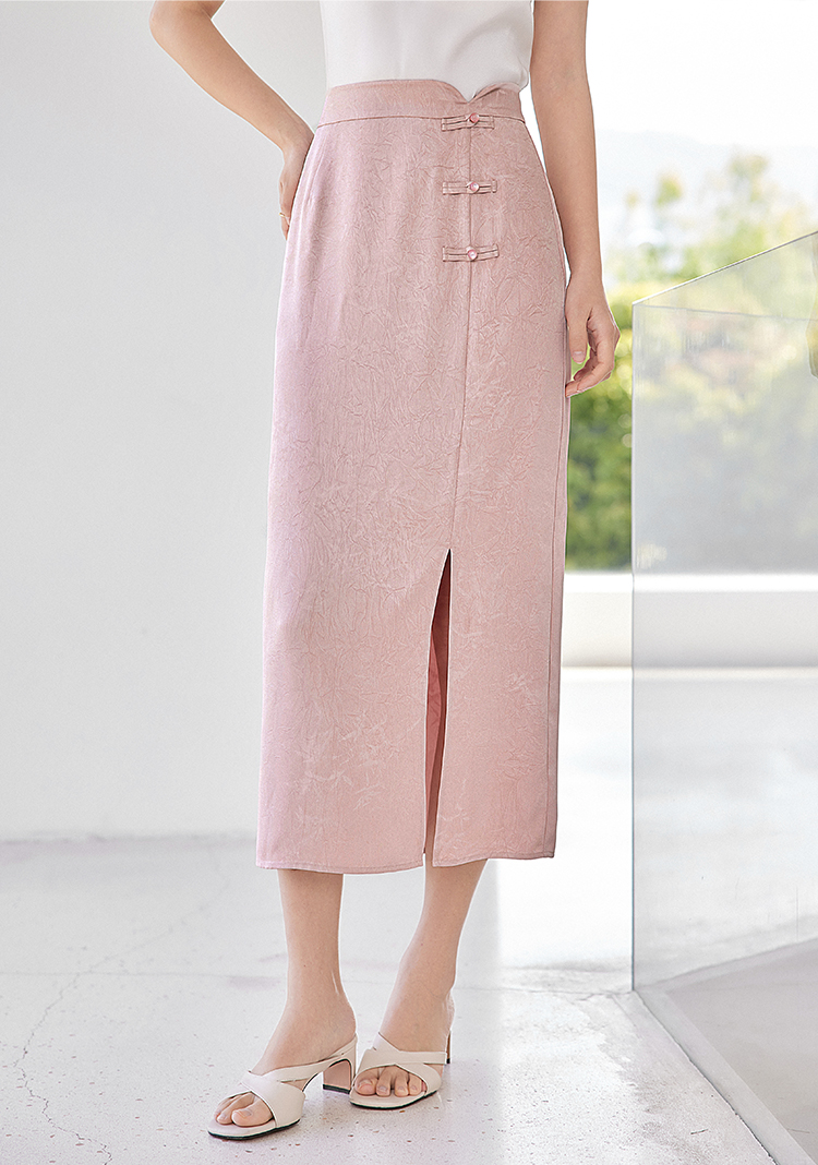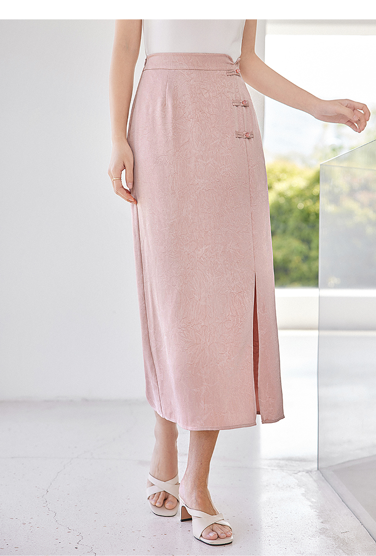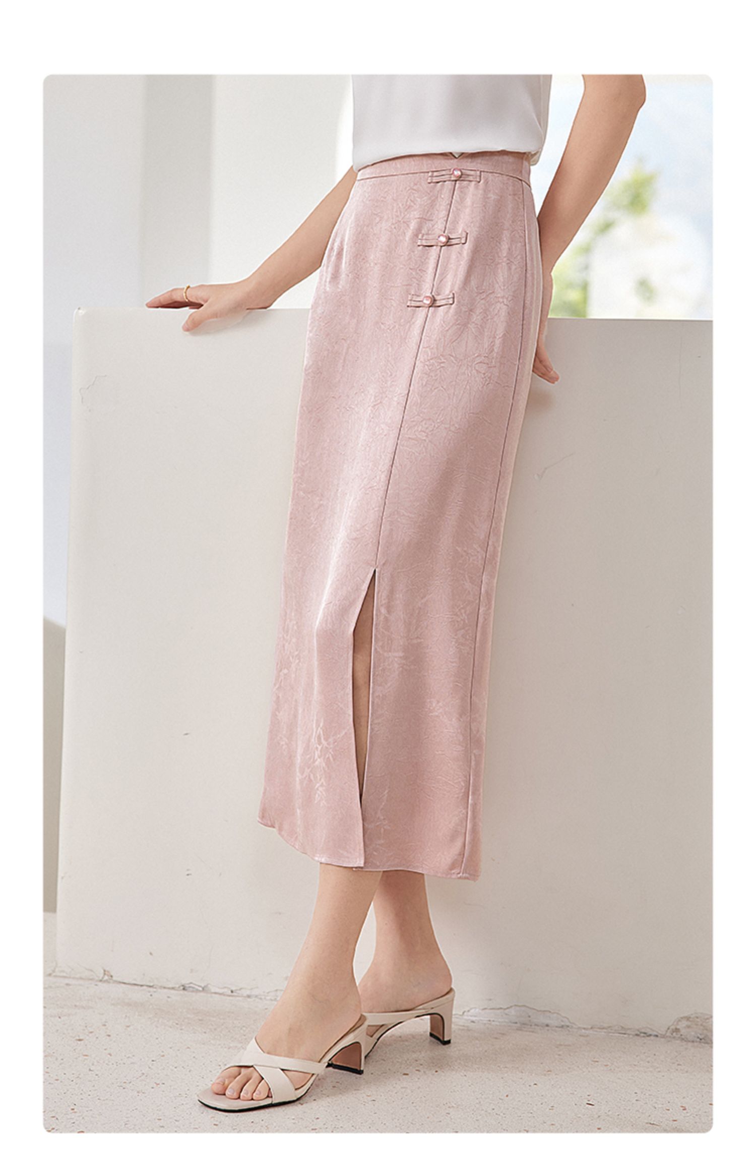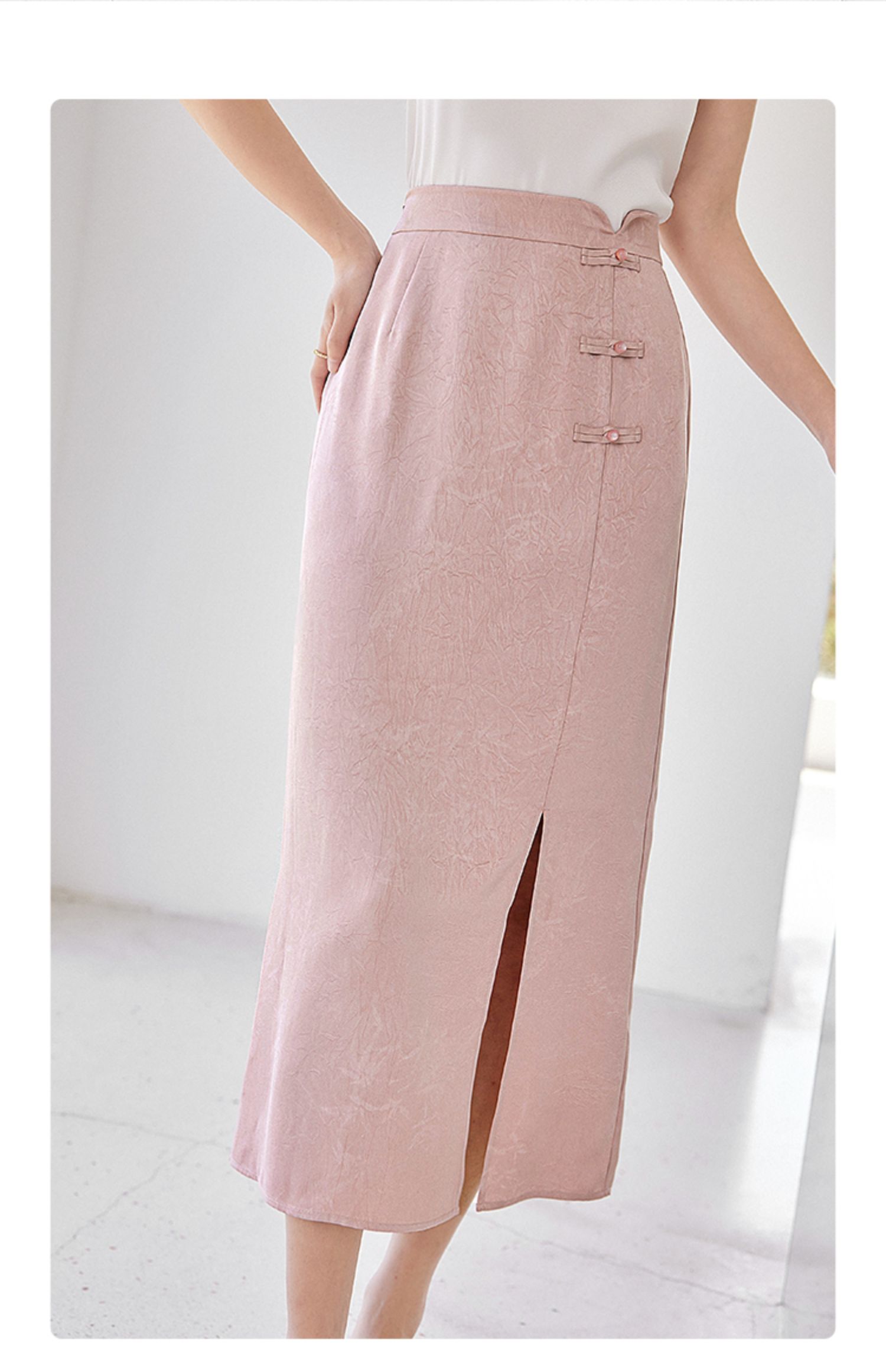 【专属特价】熙世界粉色新中式半身裙夏季2025新款国风提花开叉直筒包臀长裙