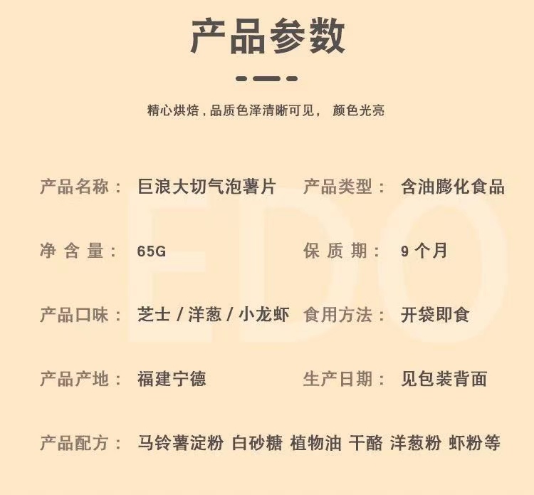 巨浪大切气泡薯片酸奶洋葱味65g