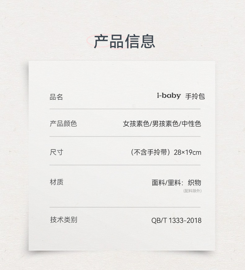 【2025秋冬新品】i-baby素色手拎包(28×19cm)