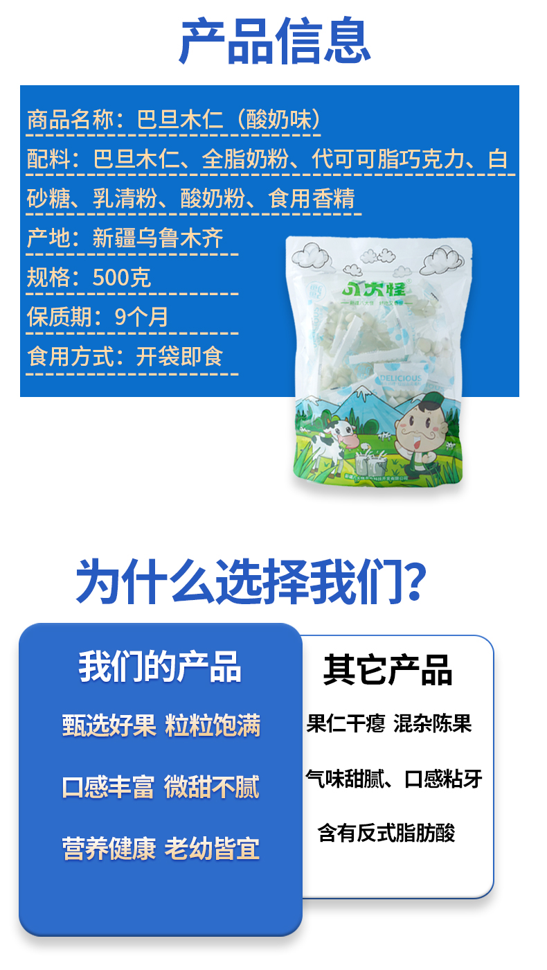 【严选】【新疆巴旦木 酥脆营养 奶香浓郁】新疆八大怪 酸奶巴旦木500g/袋 (厂家直发)