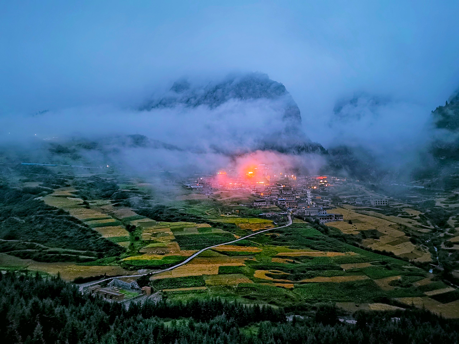 春天的扎尕那有朦胧的晨雾和炊烟,