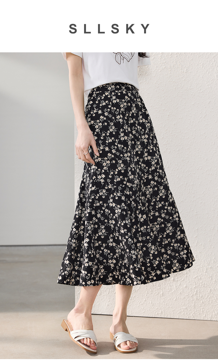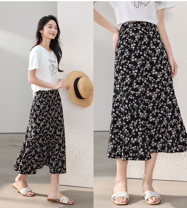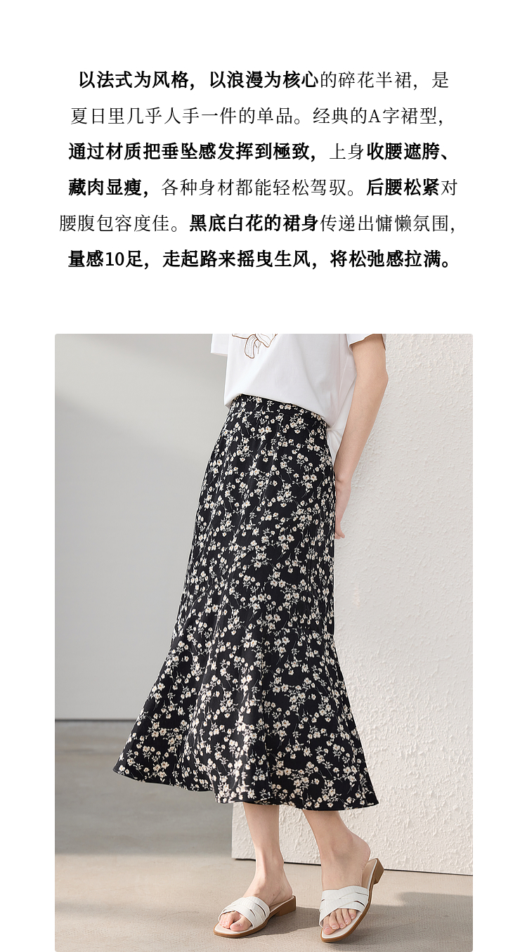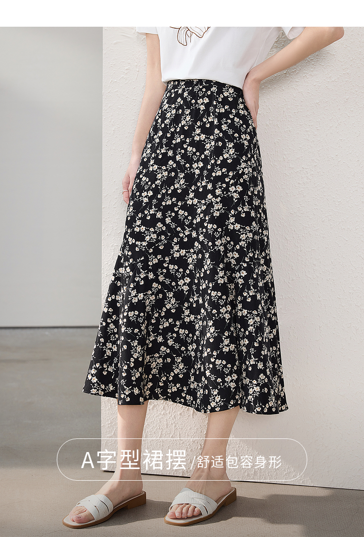 【专属特价】熙世界繁花半身裙女2025夏季新款高腰雪纺a字裙复古浪漫碎花长裙