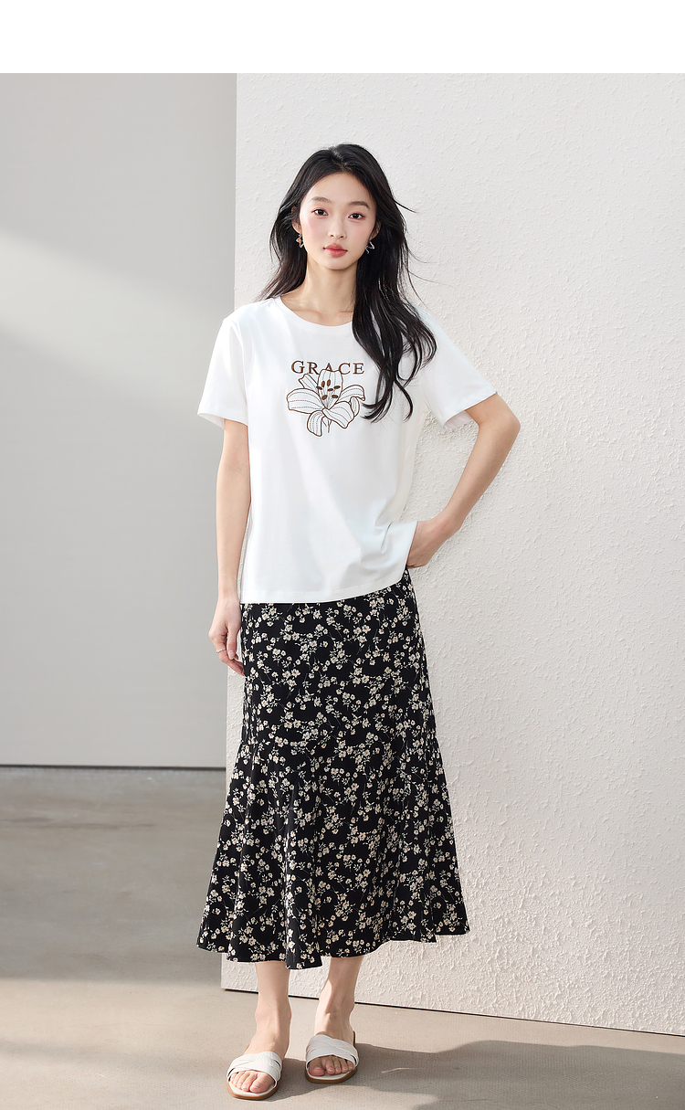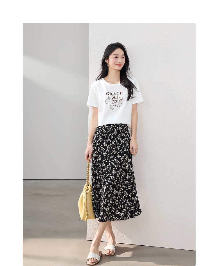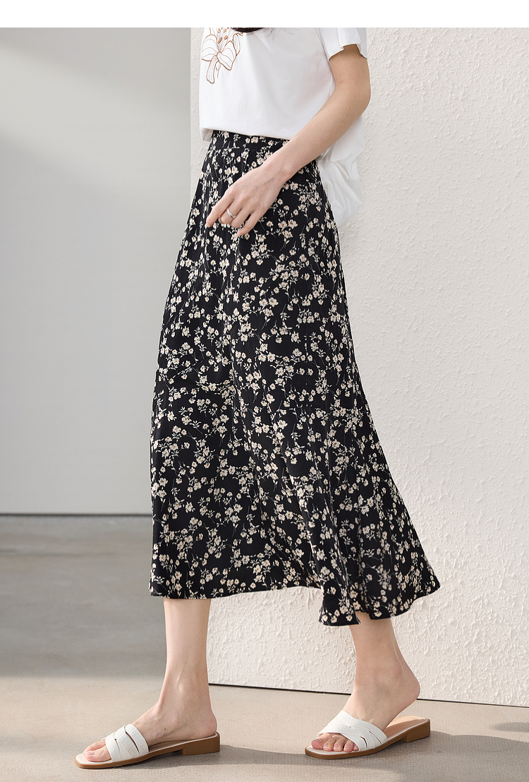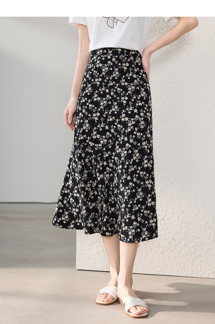 【专属特价】熙世界繁花半身裙女2025夏季新款高腰雪纺a字裙复古浪漫碎花长裙