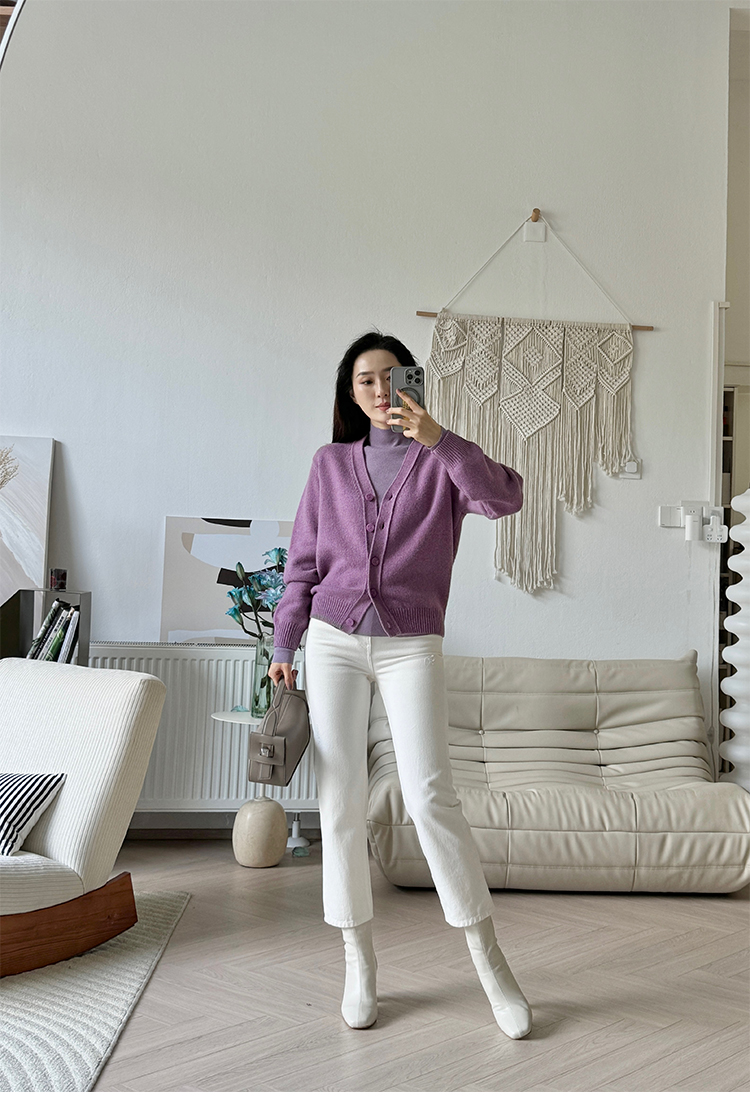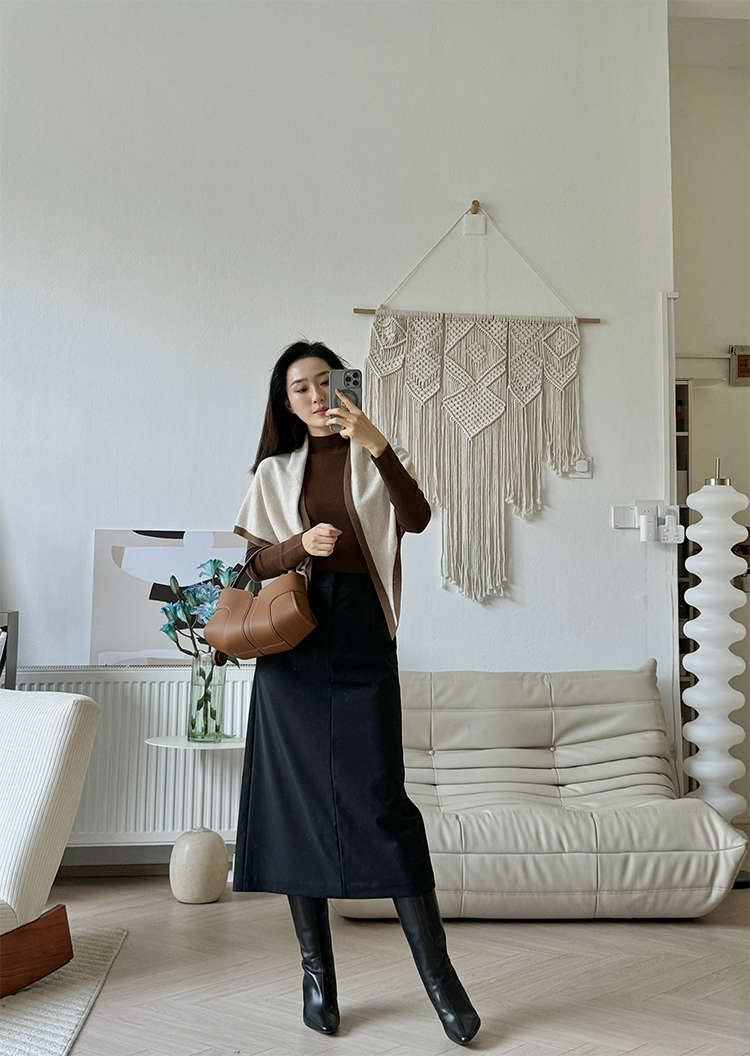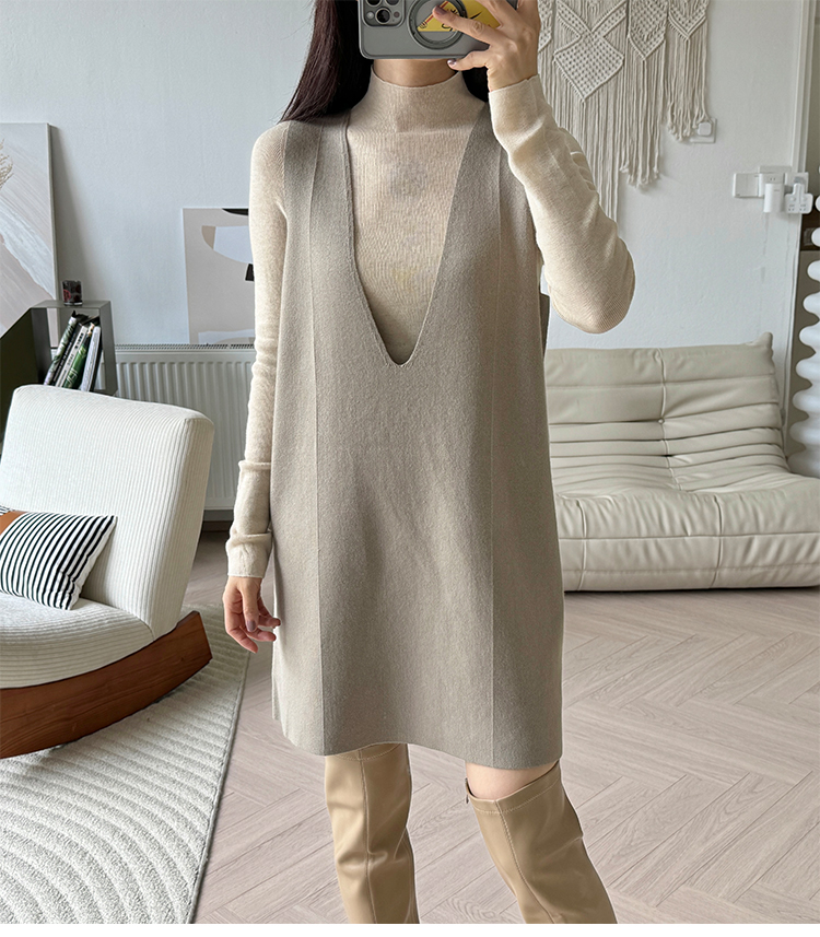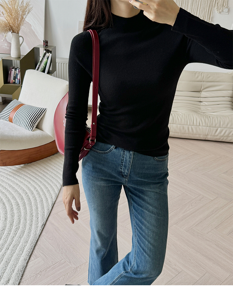 “可机洗”一体针「真丝羊绒混纺」半高领针织打底衫