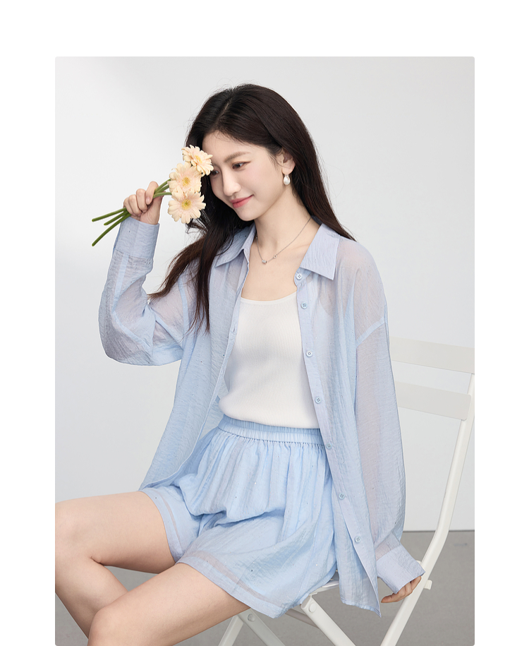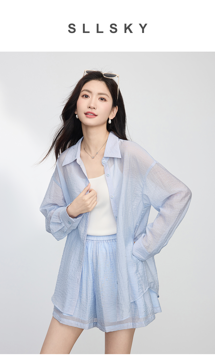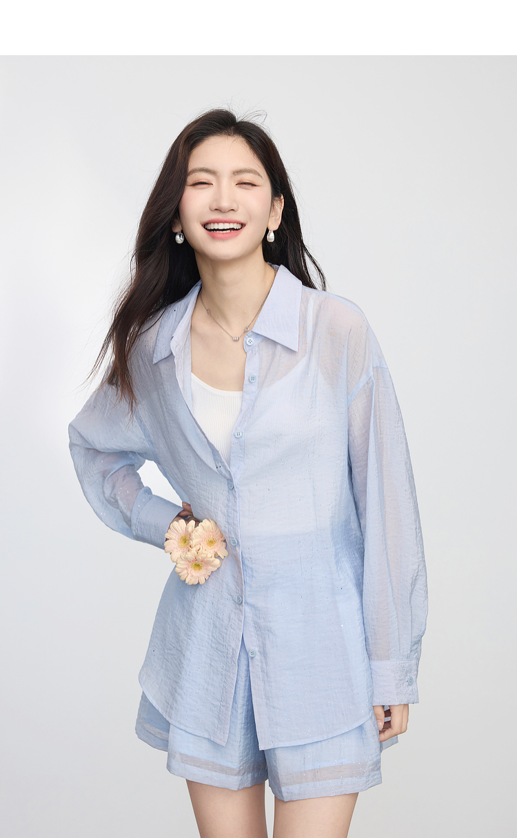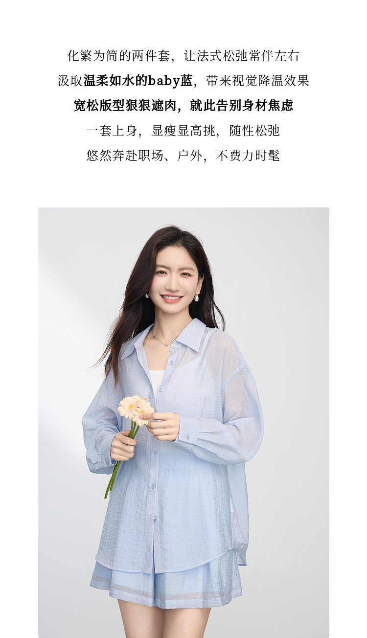 【专属特价】熙世界淡人穿搭防晒衬衫套装夏日女装宽松减龄休闲衬衣短裤两件套