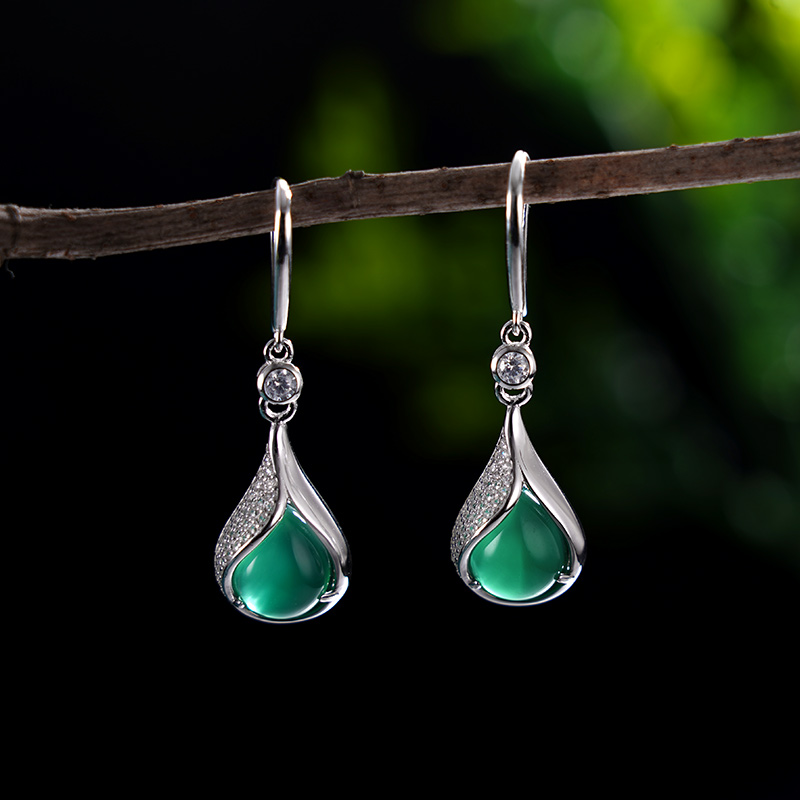 子佩集S925银玉髓【茹茵】耳环【ES011924】纯银绿玉髓水滴形2405