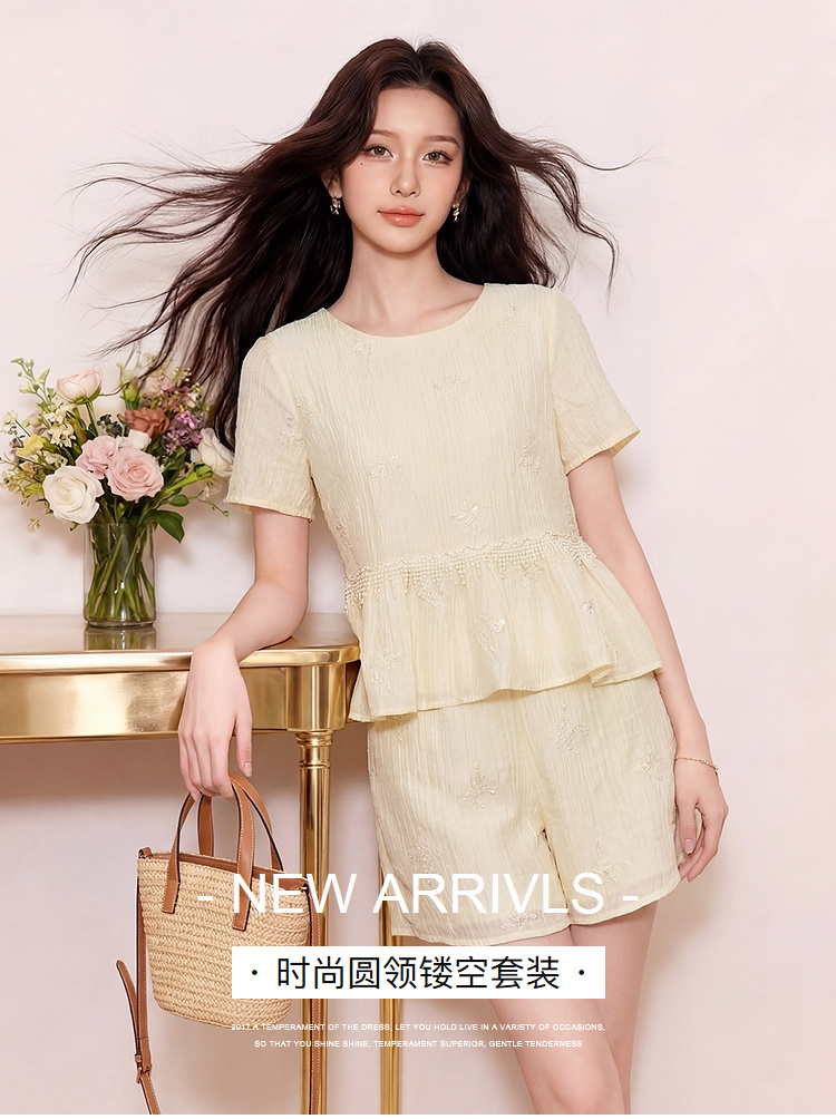 奢姿大码女装2026夏季时尚拼接衣摆两件套胖妹妹气质温柔显瘦套装9962972050