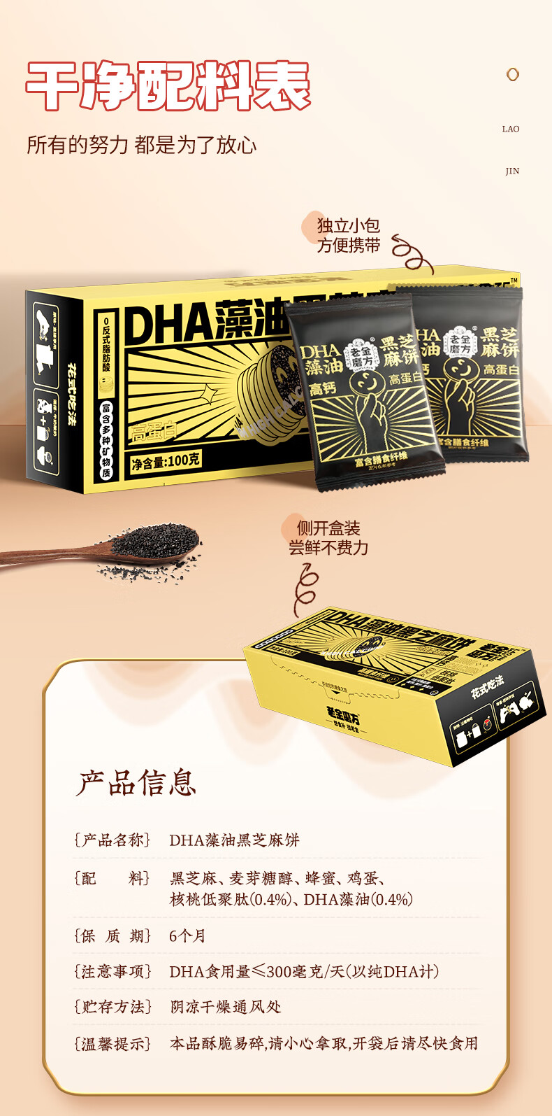 【分仓直发包邮】老金磨方DHA藻油黑芝麻饼100g