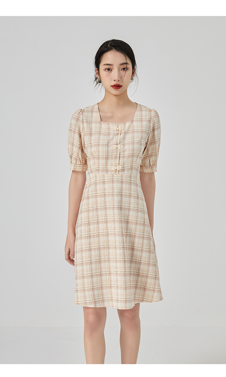 oldcolour2023夏季新款甜美气质小个子短款格纹连衣裙GN21101708