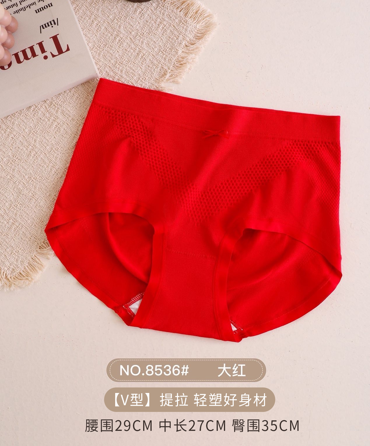 女士大红无缝内裤合集舒适透气高腰收腹本命年鸿运三角裤