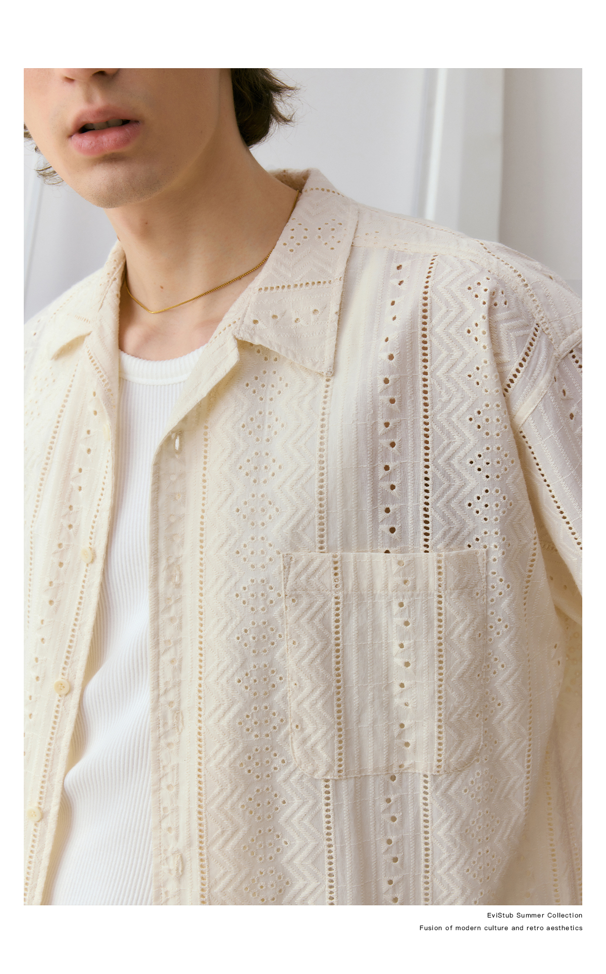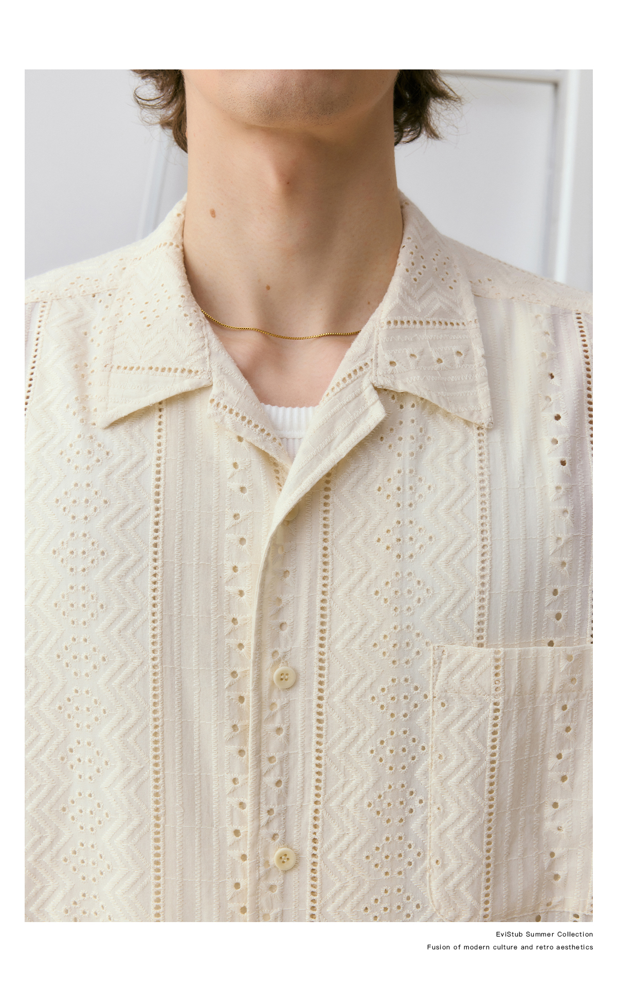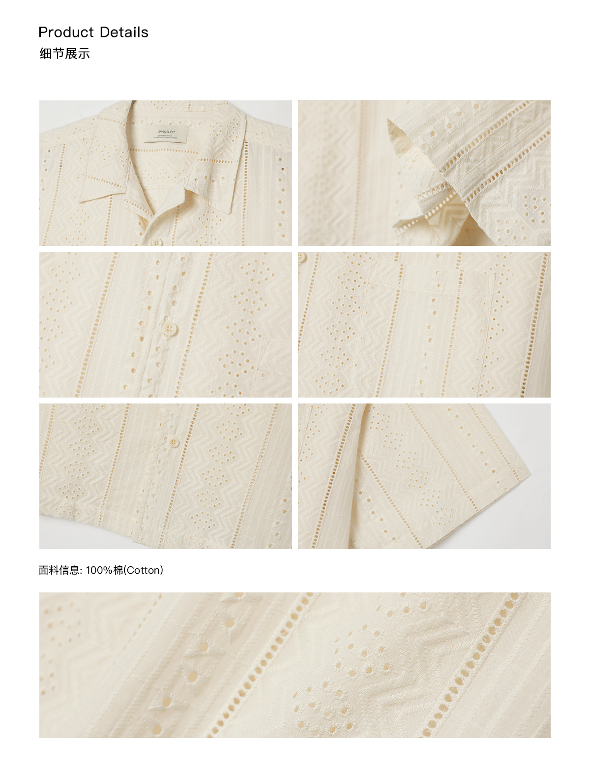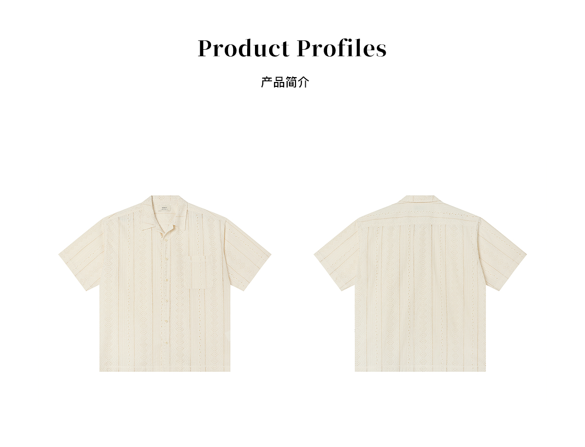EviStub/E-4XCS93/镂空纹理全棉透气宽松休闲古巴短袖衬衫