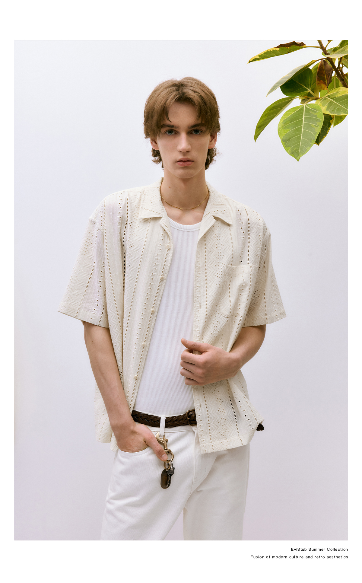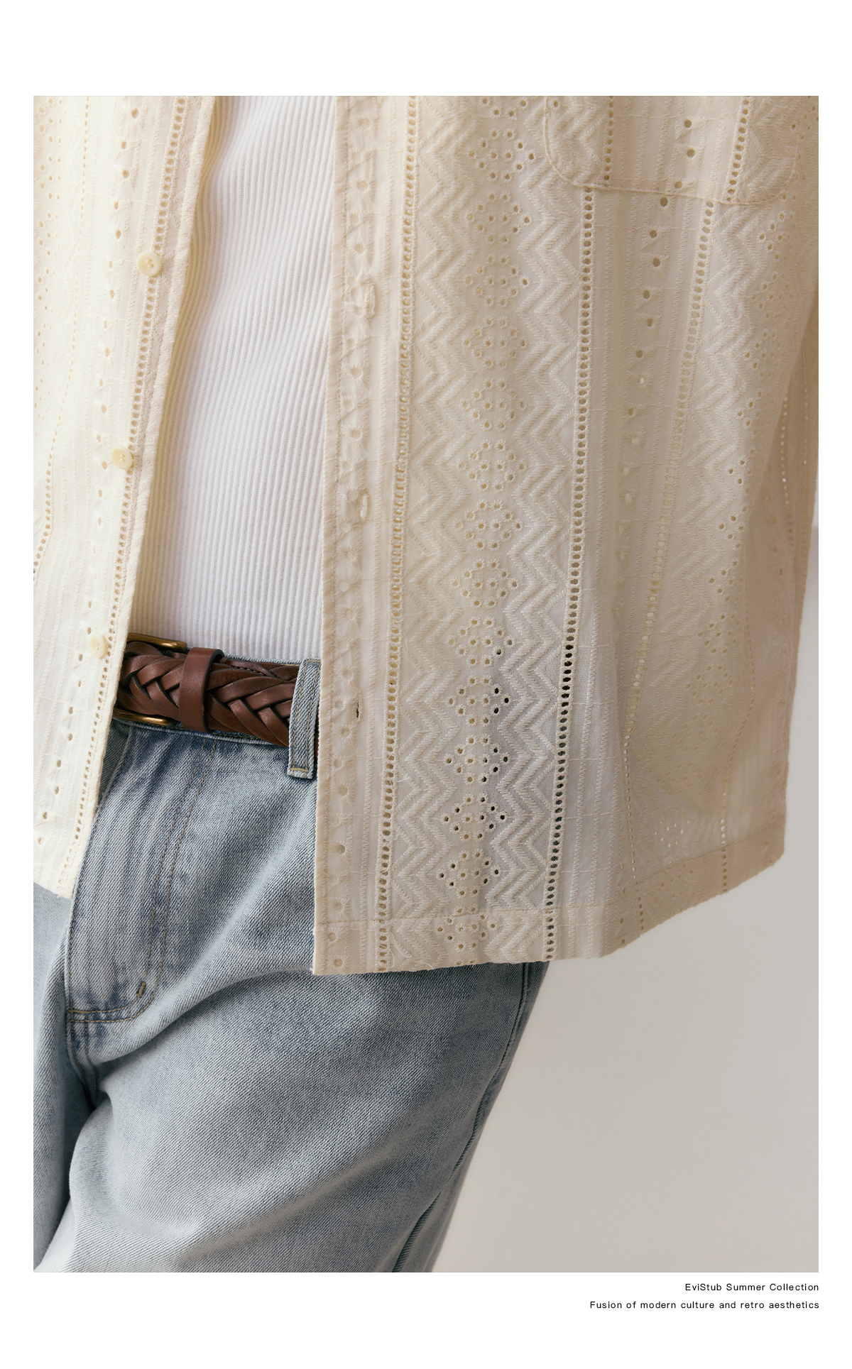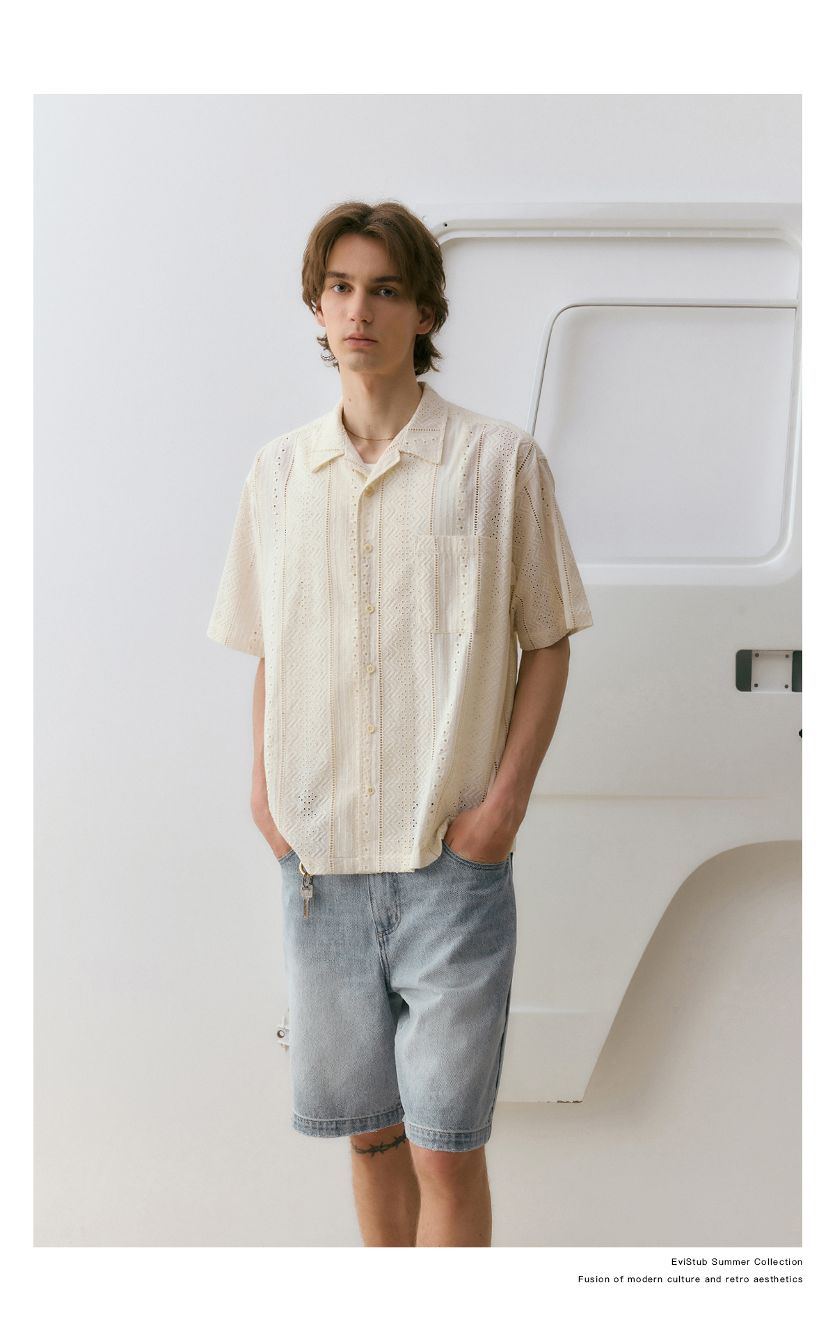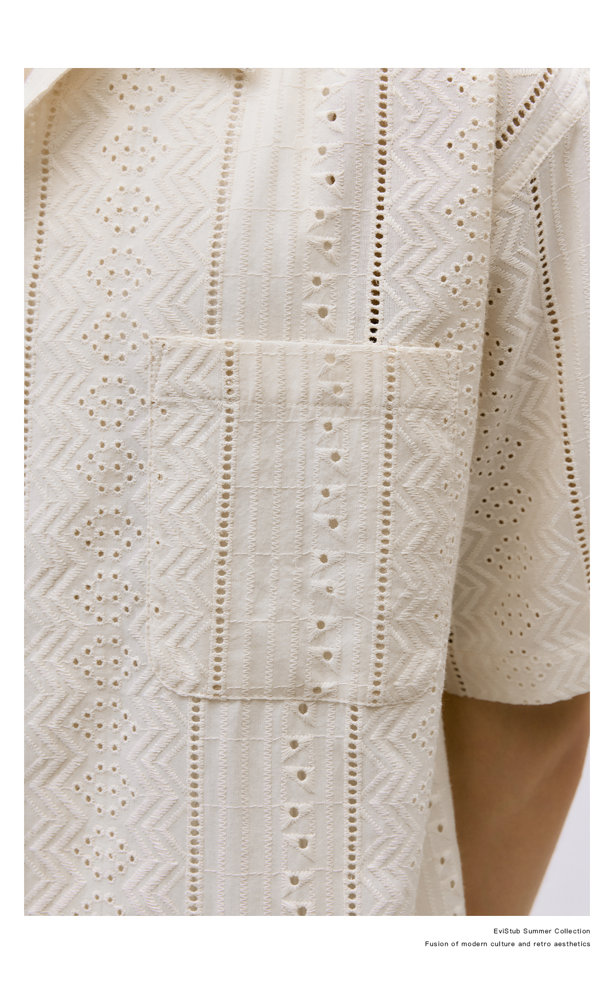 EviStub/E-4XCS93/镂空纹理全棉透气宽松休闲古巴短袖衬衫