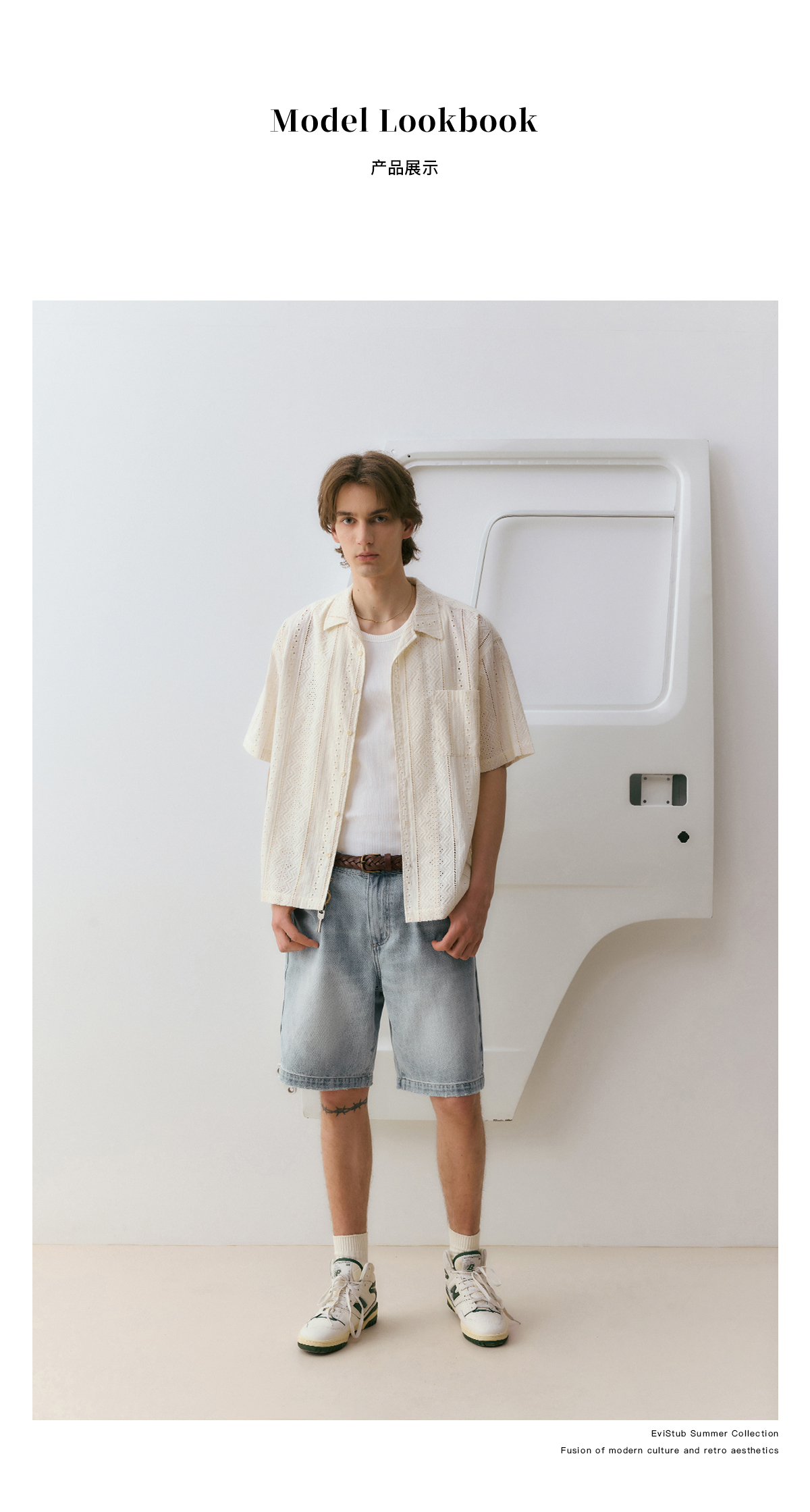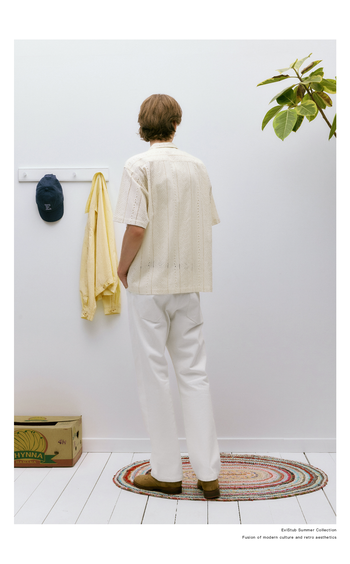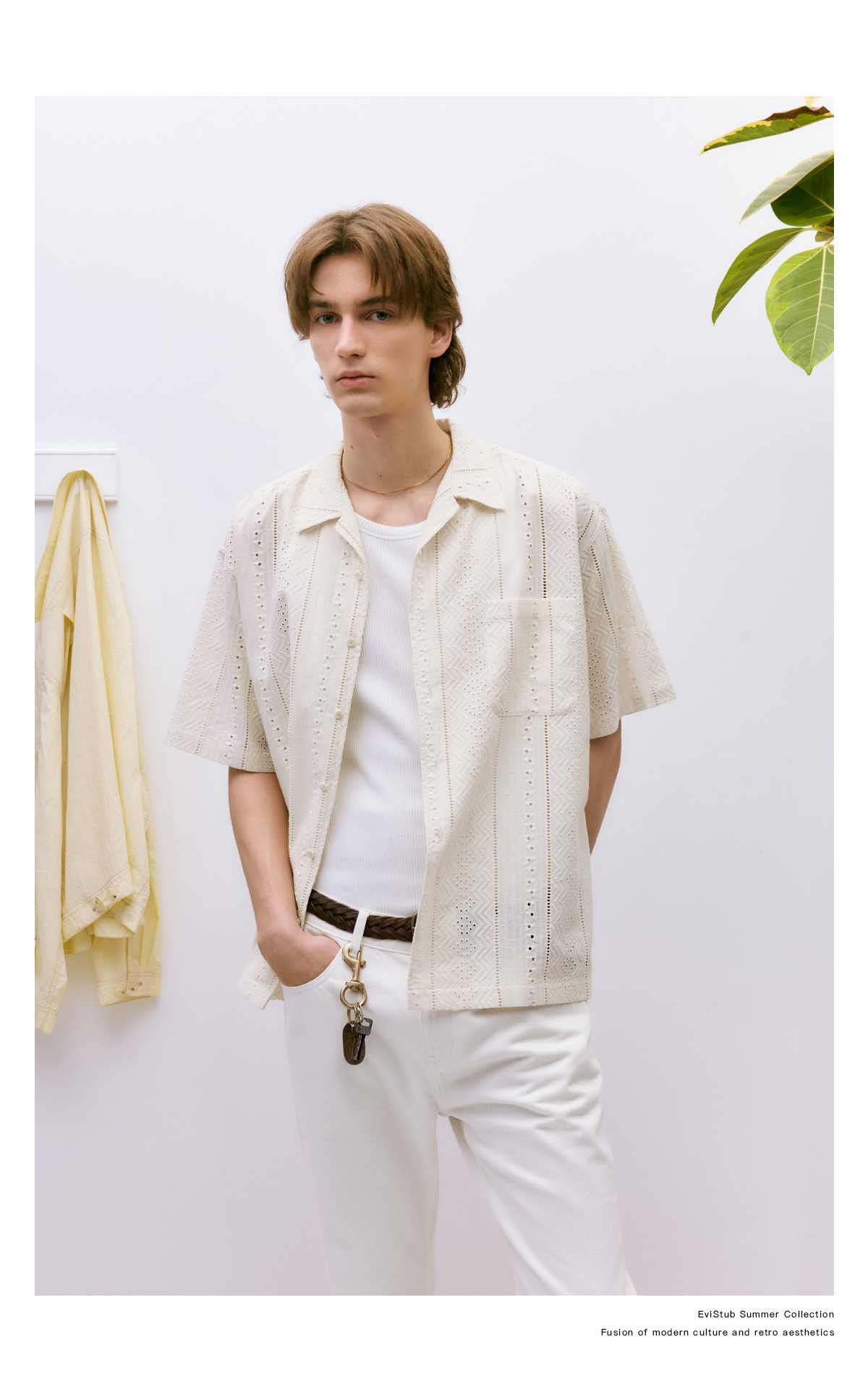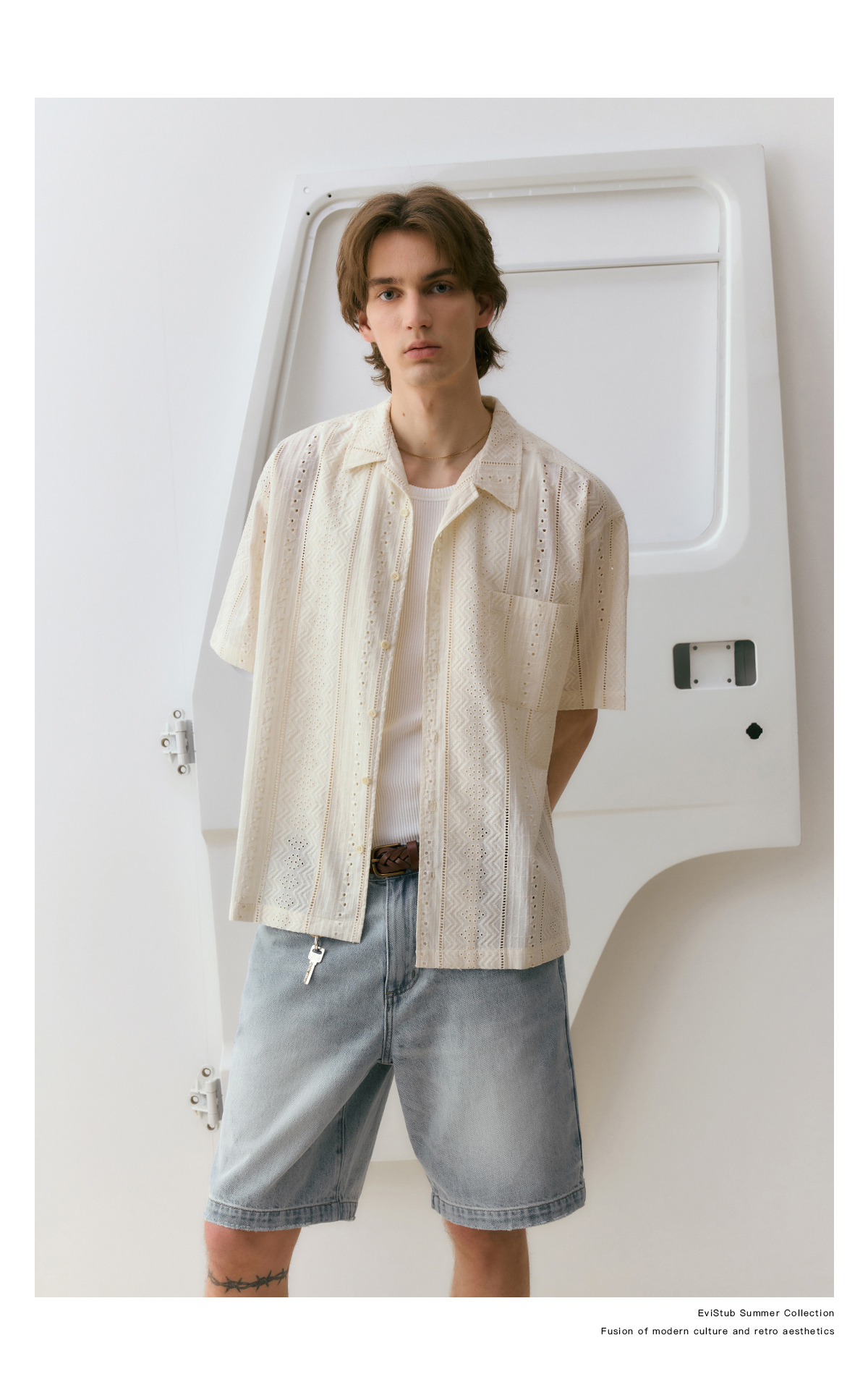 EviStub/E-4XCS93/镂空纹理全棉透气宽松休闲古巴短袖衬衫