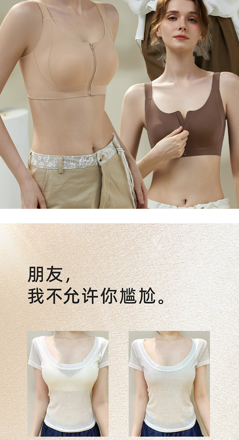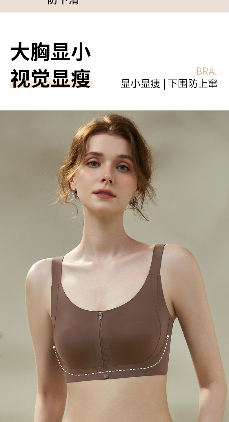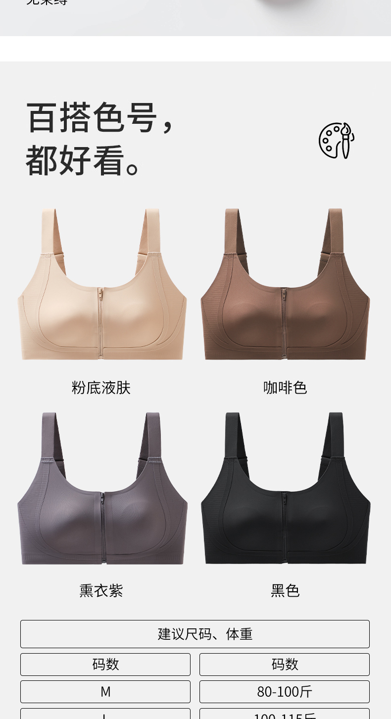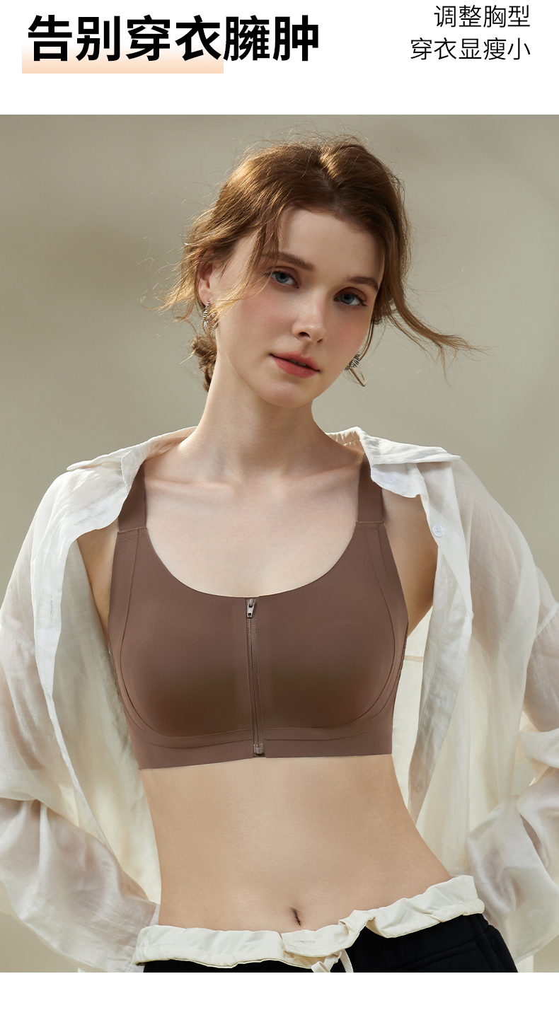 皇家丽美2026新款前拉链内衣女舒适防下垂聚拢美背粉底液运动文胸WW943-1