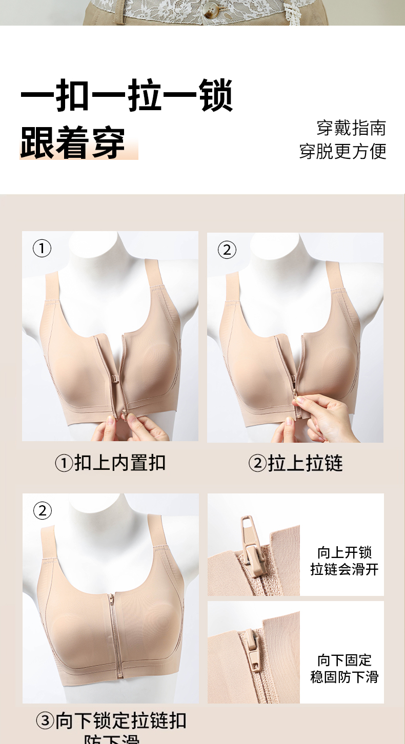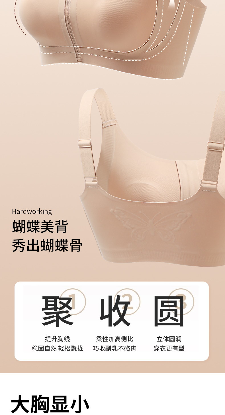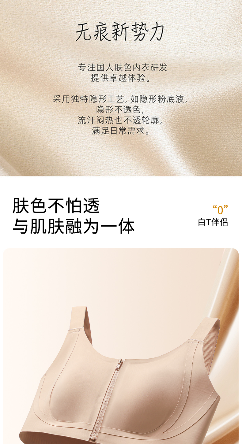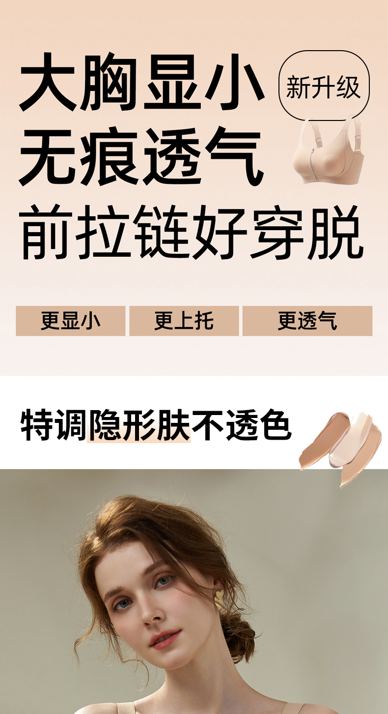 皇家丽美2026新款前拉链内衣女舒适防下垂聚拢美背粉底液运动文胸WW943-1