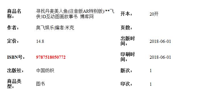 这个美丽的**由大大小小四百多个岛屿组成,这里*有名的就是美人鱼,小美人鱼的故事就发生在丹麦,乐迪**期待能看到美人鱼。奥飞娱乐著的《寻找丹麦美人鱼(注音版AR特别版)》中还介绍了美丽的巴塞罗那,以及一些知识点,配有AR互动,图文生动,寓教于乐。