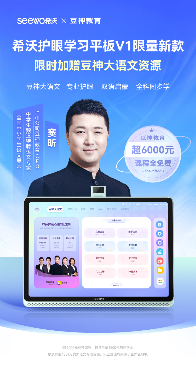 希沃护眼学习平板V1限量新款 限时加赠豆神大语文资源