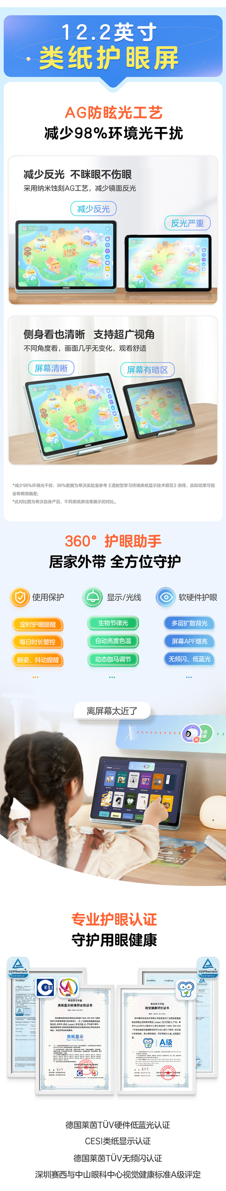 希沃护眼学习平板 T1 新一代护眼屏 好内容高效学