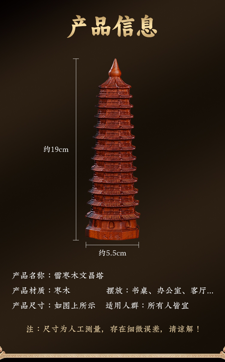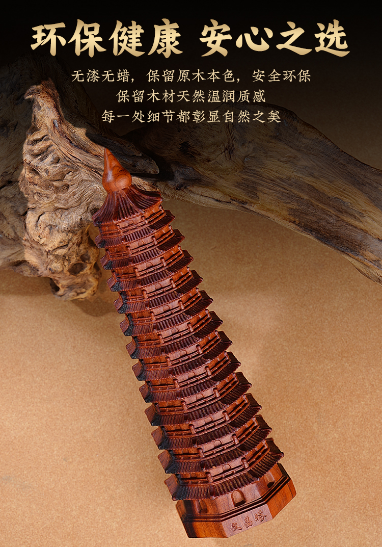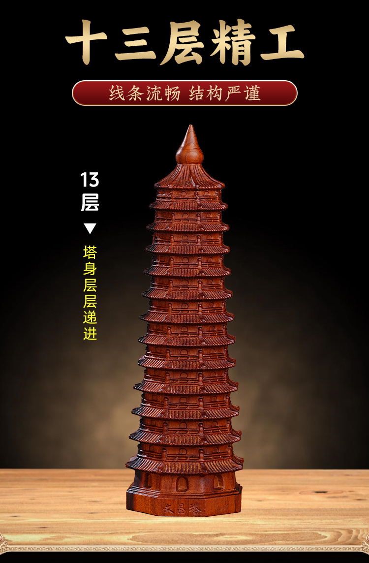 雷击木十三层文\昌\塔摆件天然枣木13层塔木质木雕办公室书房装饰品
