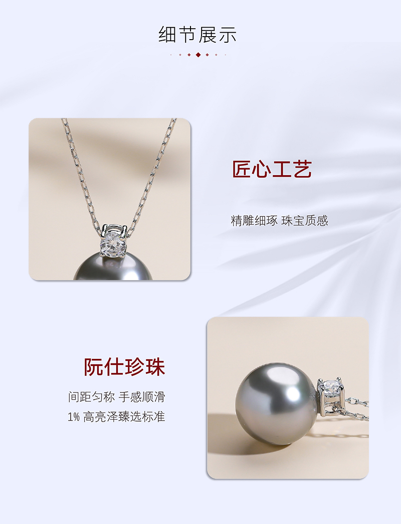 【阮仕珍珠】阮仕内敛系列S925银大溪地铂金灰链牌 11-12mm