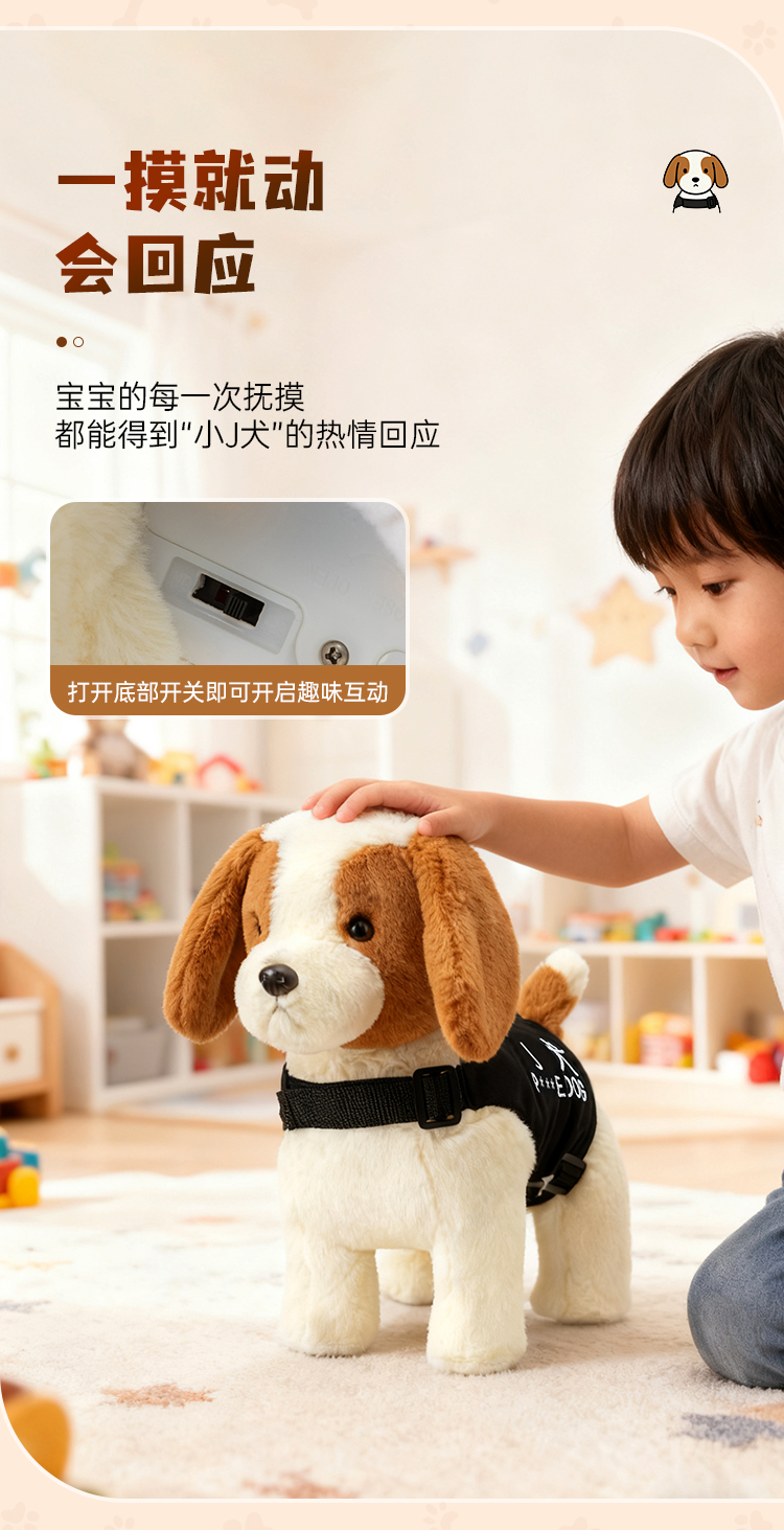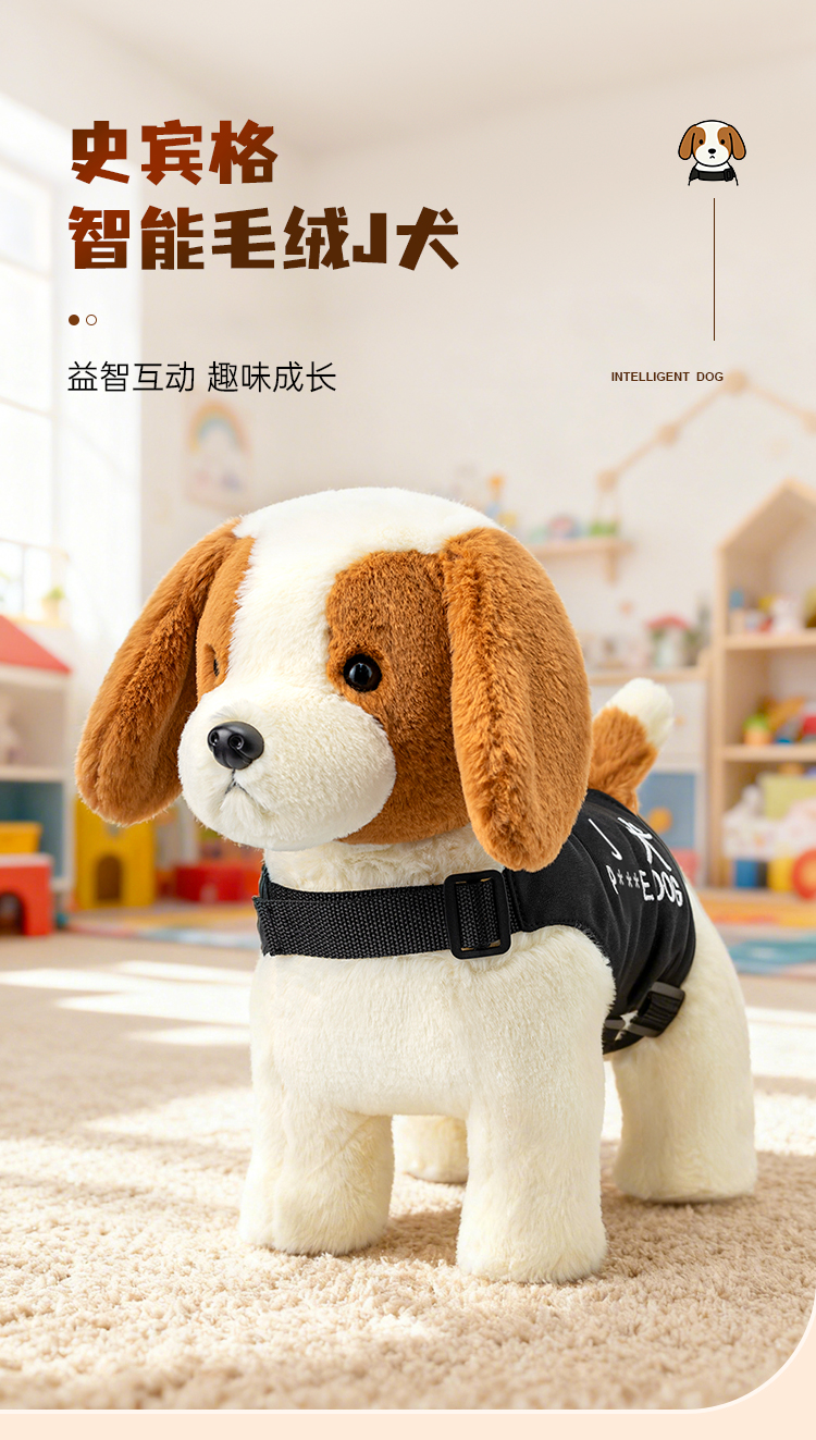 【实付满199送钥匙扣】【史宾格电动毛绒J犬】可脱卸制服狗狗毛绒玩偶电动互动儿童宠物玩具男孩女孩益智玩具送礼