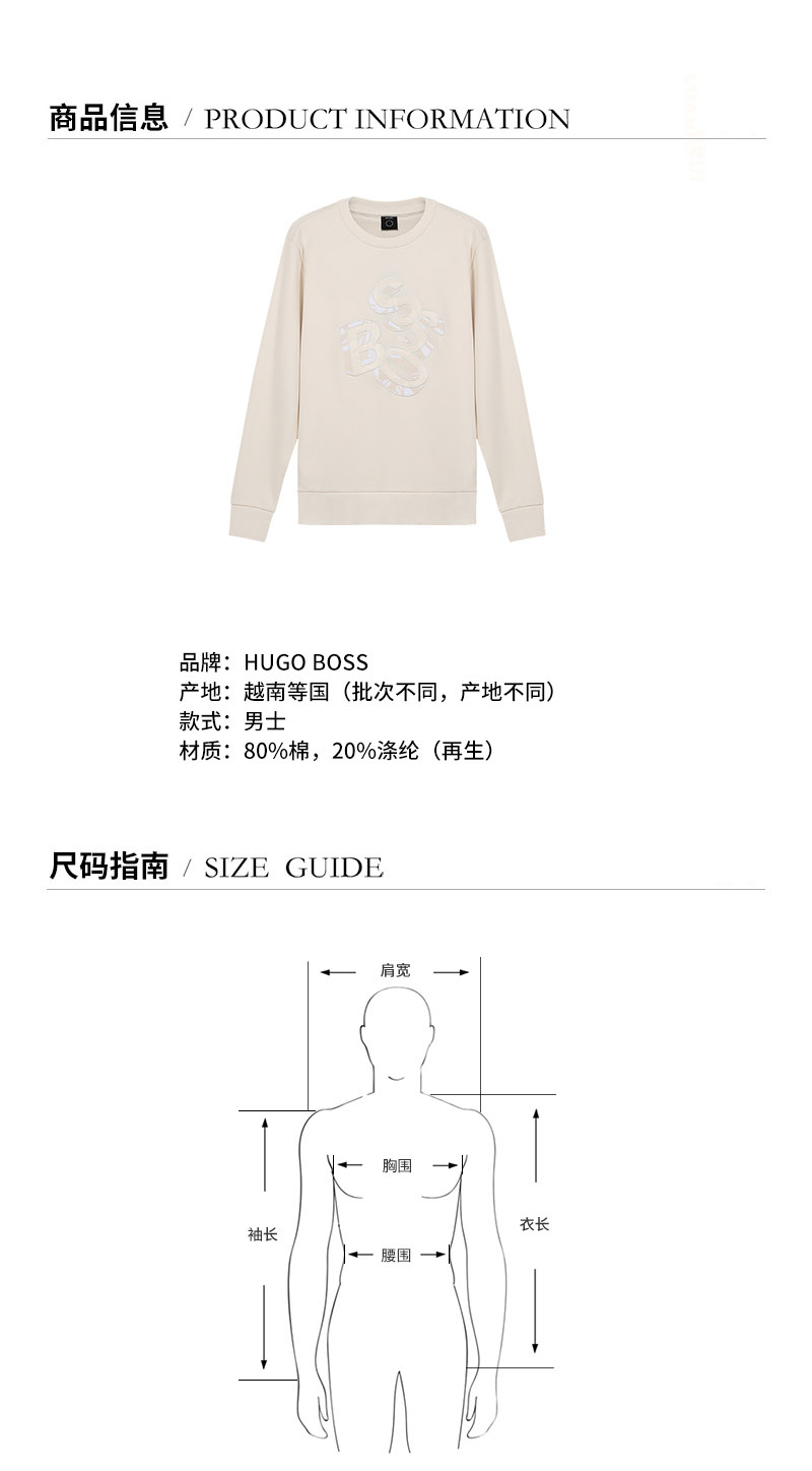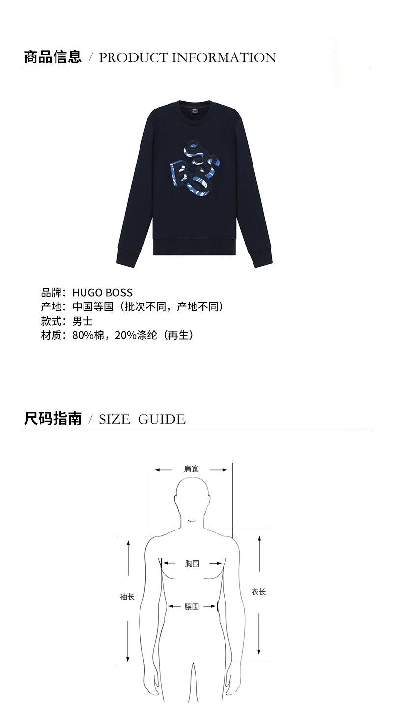 HUGO BOSS/雨果博斯 男卫衣 男士棉质圆领长袖卫衣运动衫 50452973