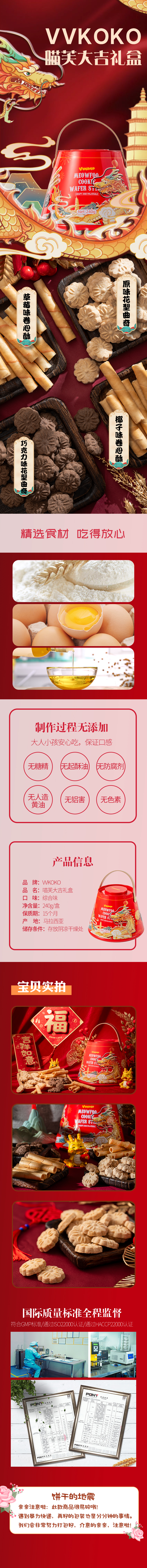 VVKOKO喵芙大吉礼盒装饼干240g/051004 草莓味卷心酥+原味花型曲奇+巧克力味花型曲奇+椰子味卷心酥