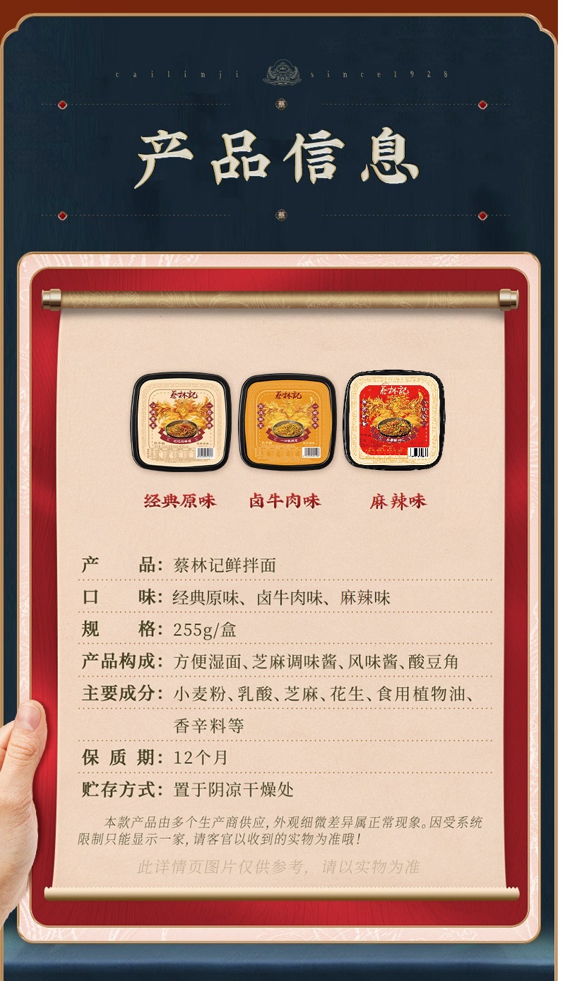 【老字号】门店同款 蔡林记 即食碗装热干面(原味/卤牛肉/麻辣)255g*9