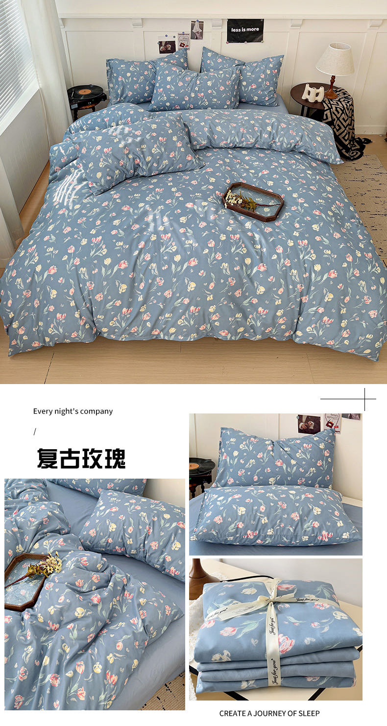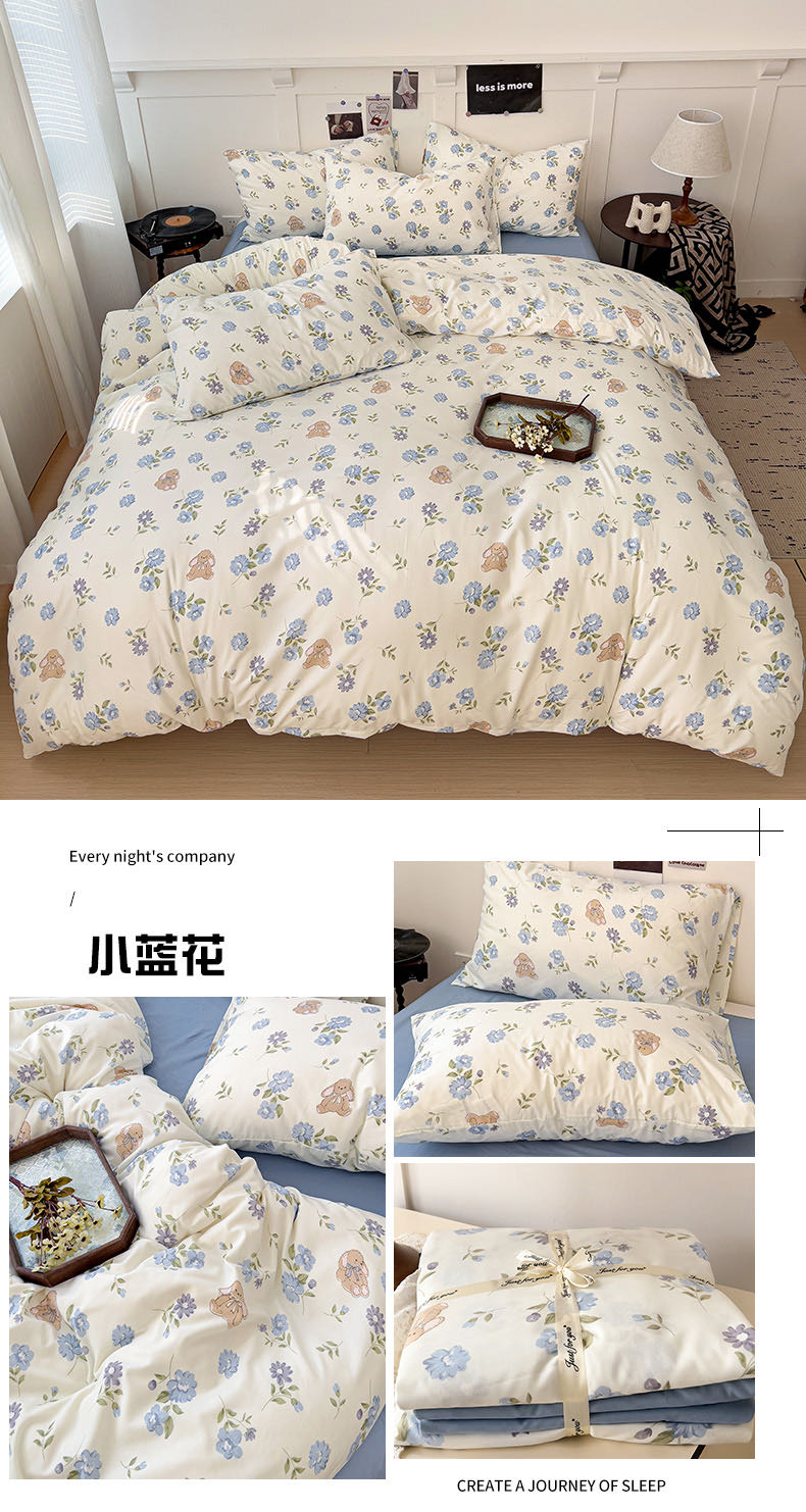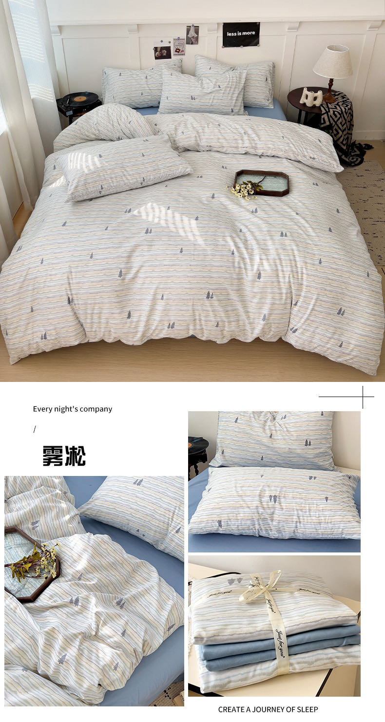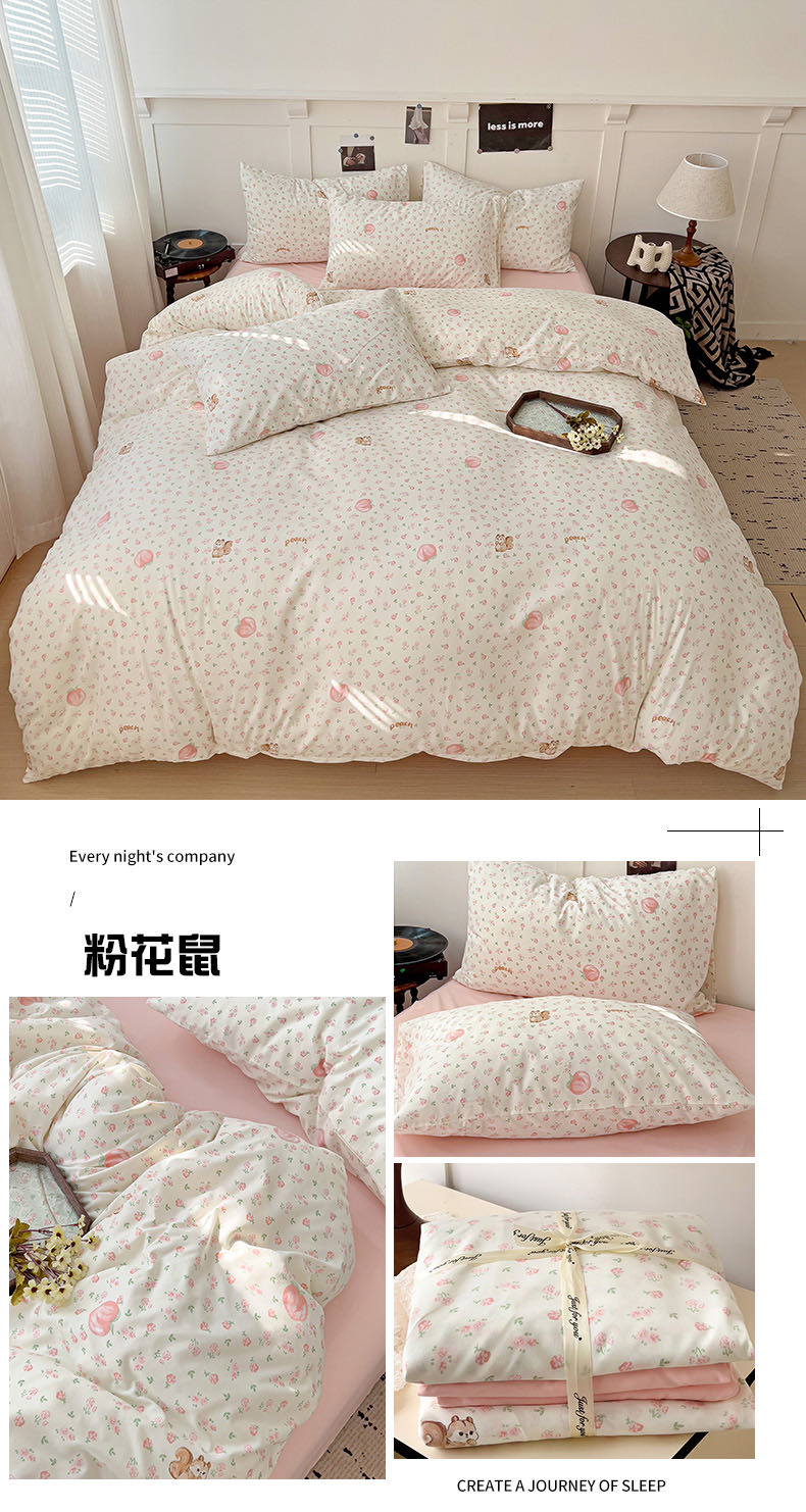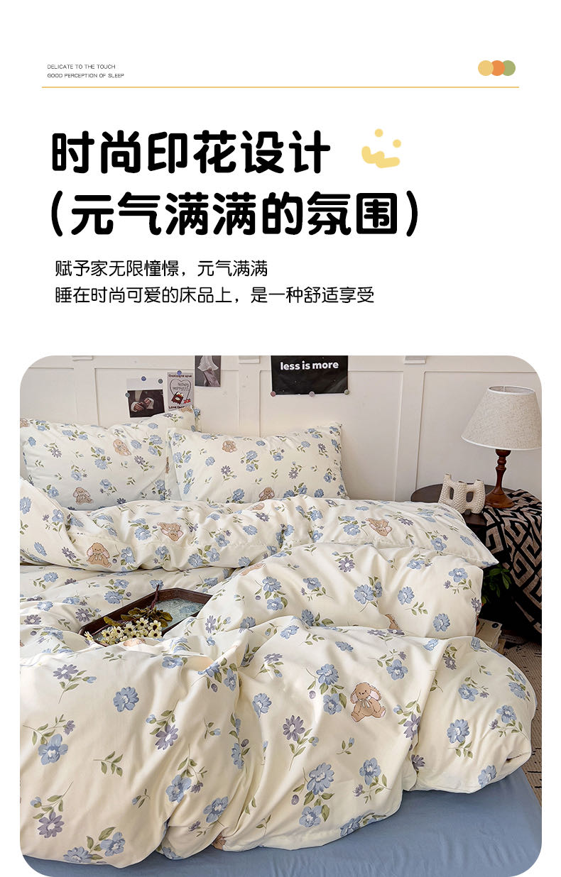 越睡越舒服!【A类水洗棉双层纱印花四件套】面料手感细腻亲肤 轻薄透气柔软 抗jun/抗皱/耐洗/耐磨 高颜值13款马卡龙印花任选!