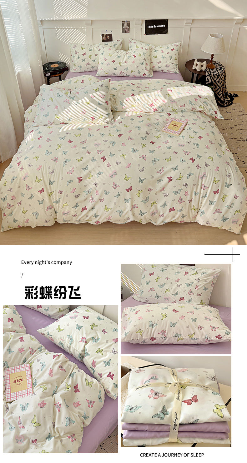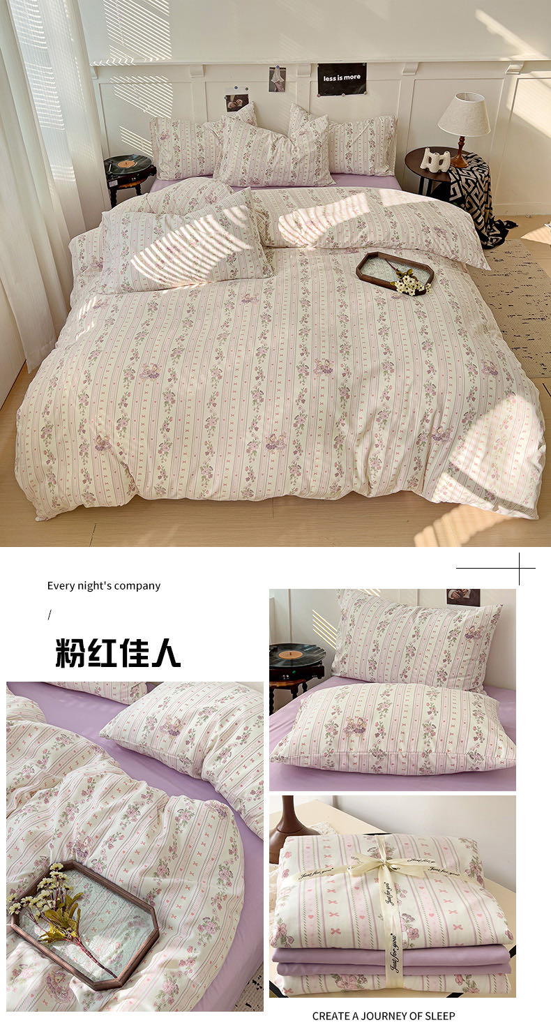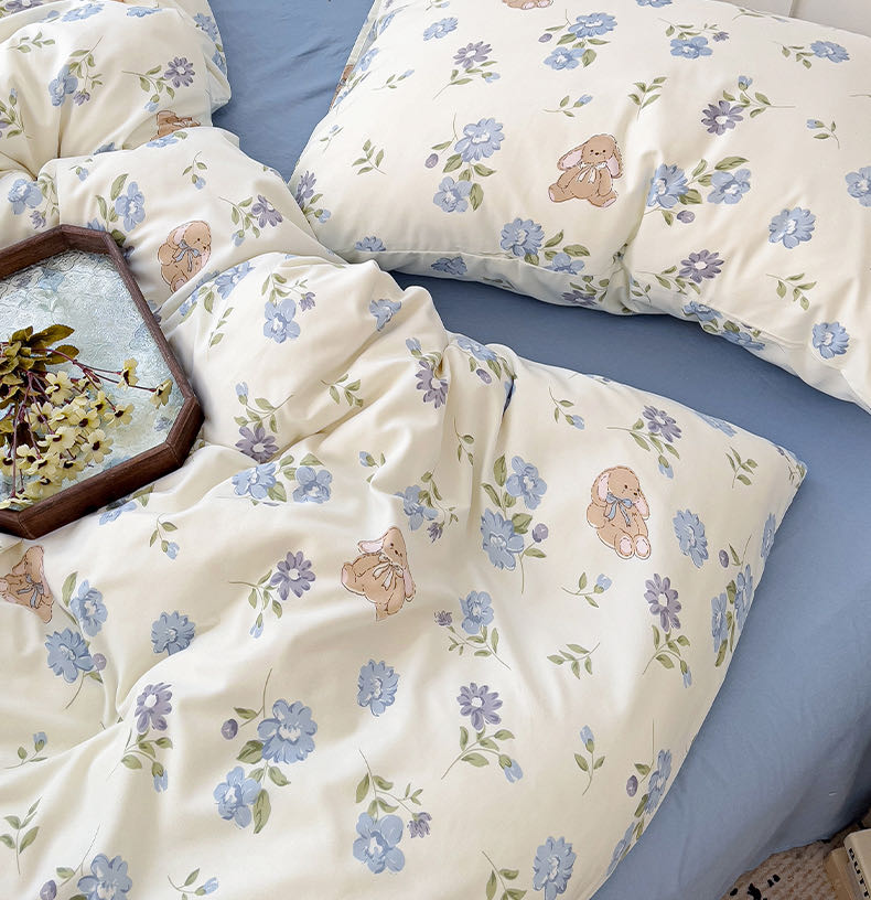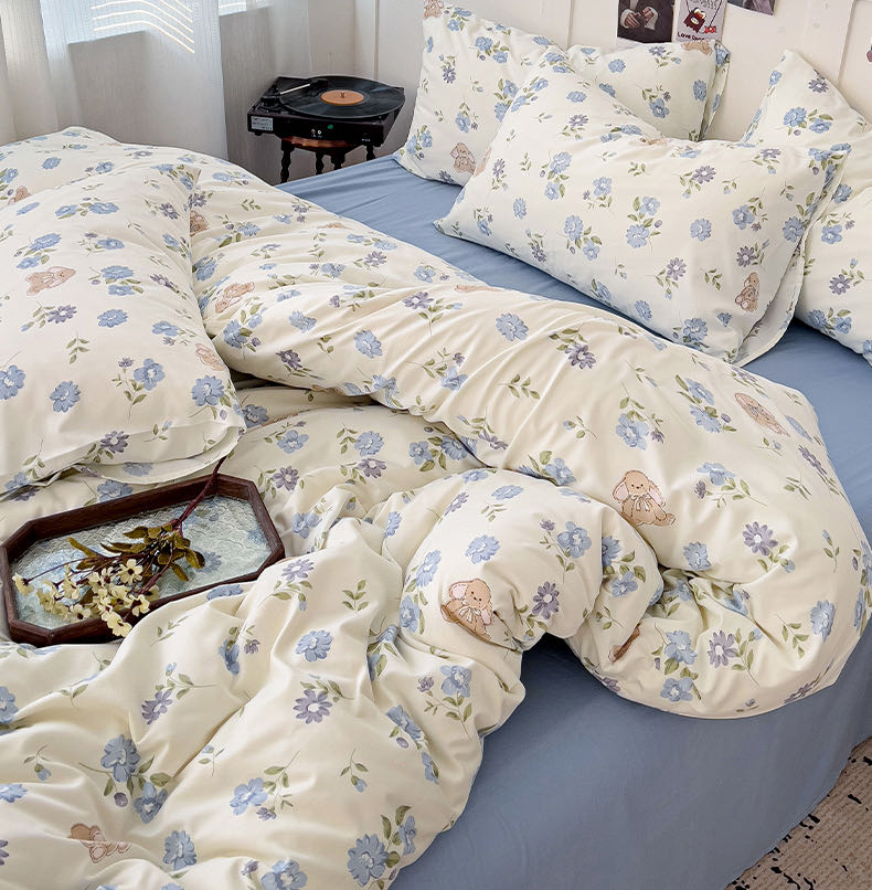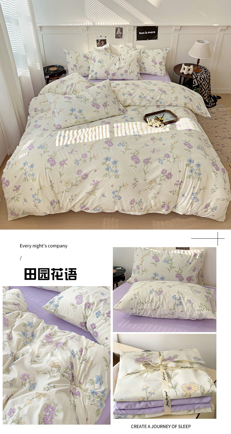 越睡越舒服!【A类水洗棉双层纱印花四件套】面料手感细腻亲肤 轻薄透气柔软 抗jun/抗皱/耐洗/耐磨 高颜值13款马卡龙印花任选!